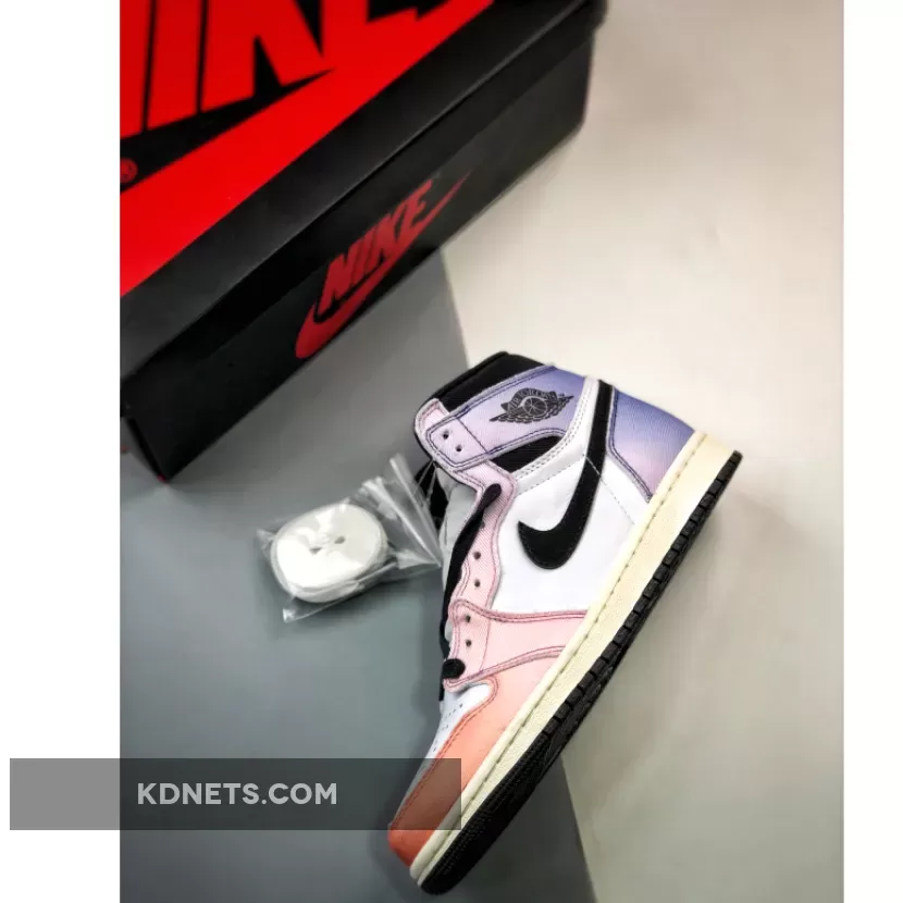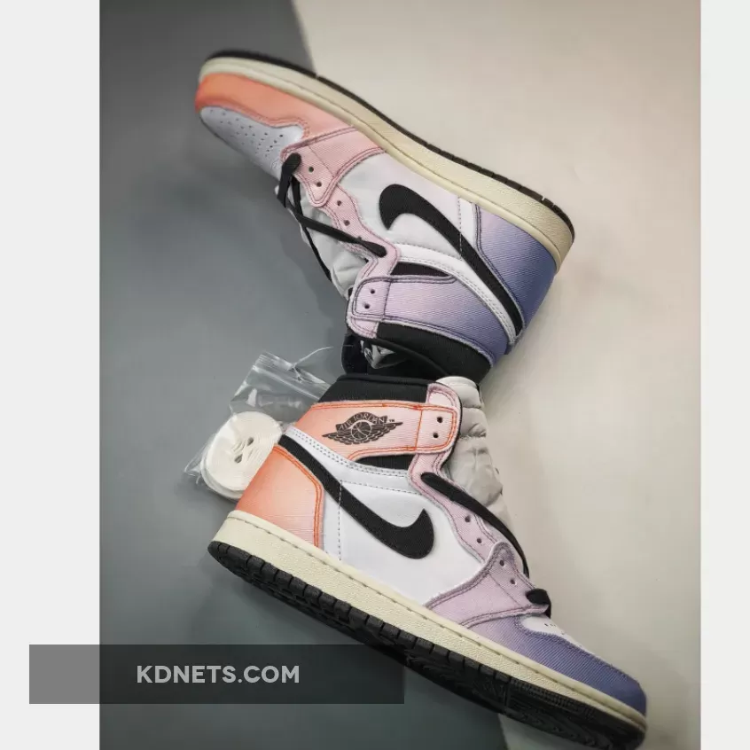 this pair is said to draw inspiration from the classic promotional image for the original Air Jordan 1 that saw Michael Jordan in his Jumpman pose against Chicago’s skyline at sunset, hence the pink to purple gradient overlays.