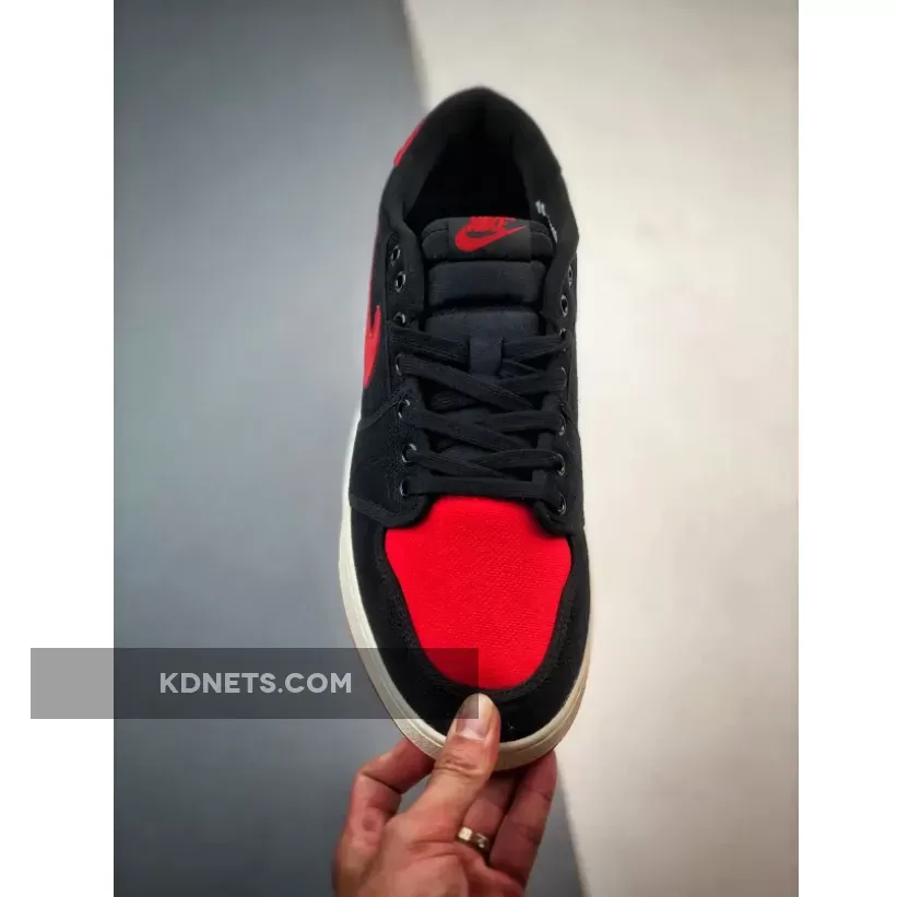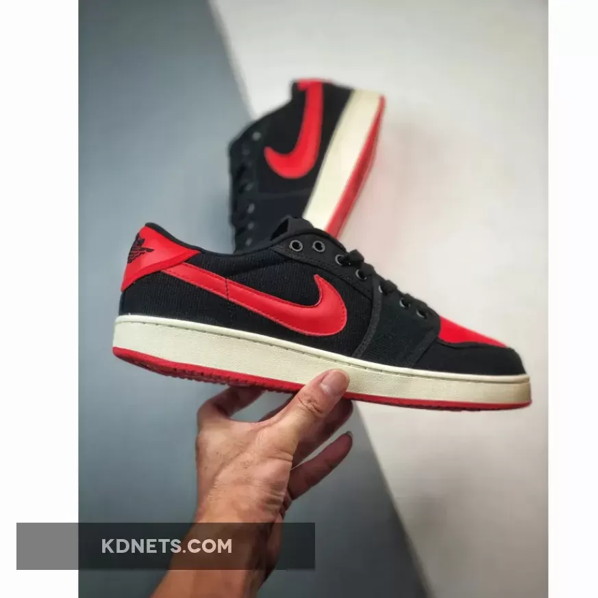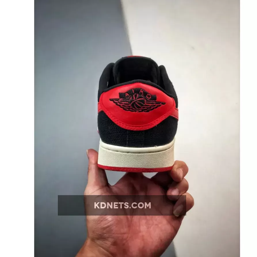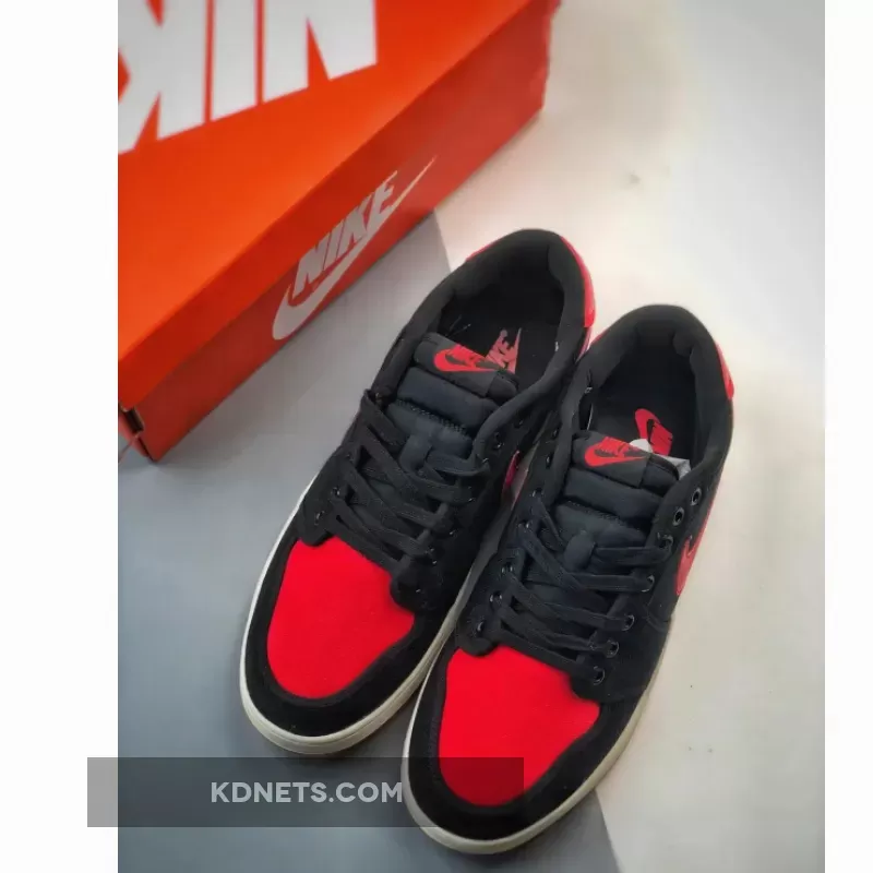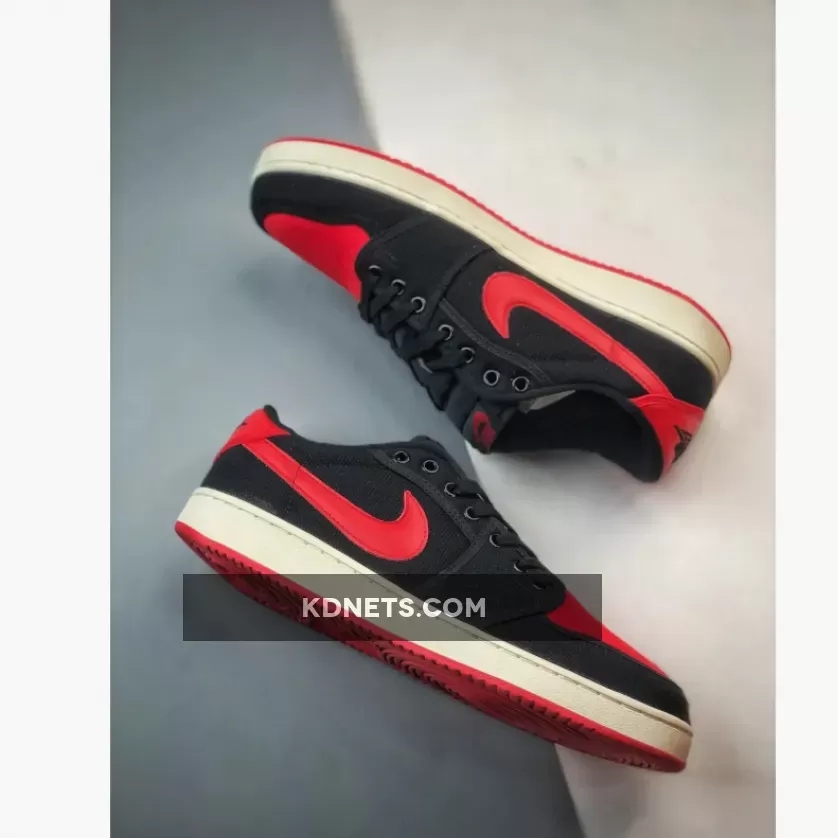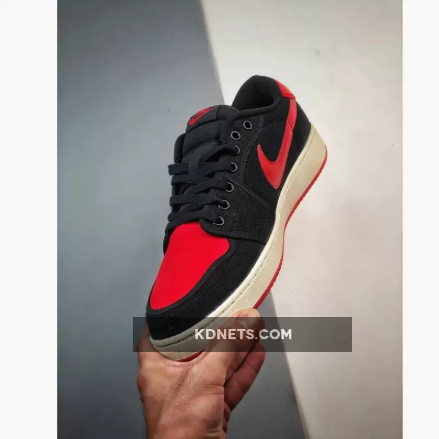 “Love my new AJ1 KO Low ‘Bred’! 🔥 The canvas upper is surprisingly comfy & durable. Red accents pop against black background – stunning design 👟. Only minor gripe: tongue tag could be more secure 🤔. Overall, solid choice for Jordan fans on a budget 💸.”