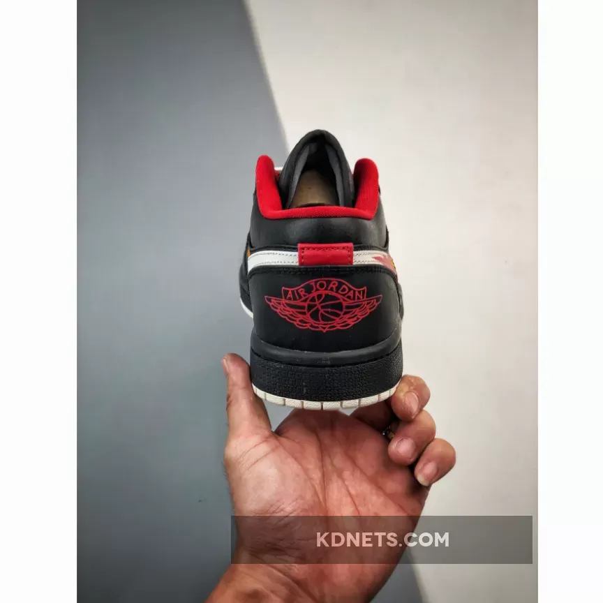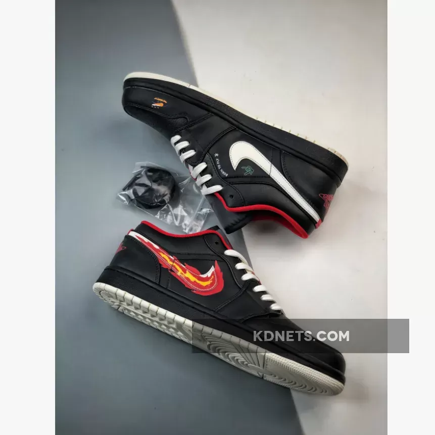 Not only that, the spirited “Just Skate” messaging behind the tongue, “Born To Fly” on the medial side, and a Swoosh logo lit in flames.A red Jumpman logo is embroidered onto the black tongues whilst a red Wings logo is printed onto the heel spines with the skate-theme. A black midsole and a sail-coloured rubber outsole wrap up the look of this shoe.