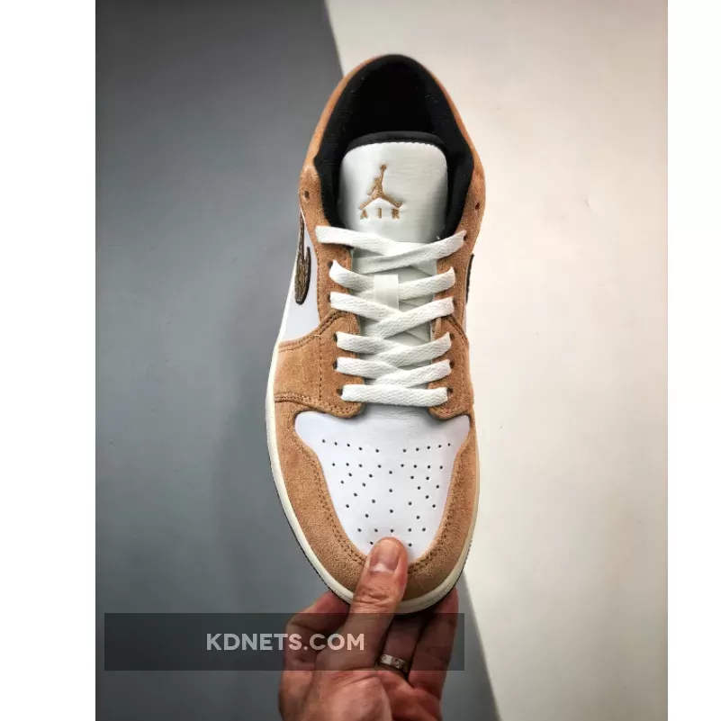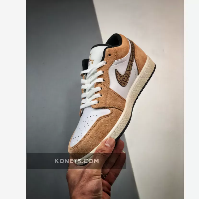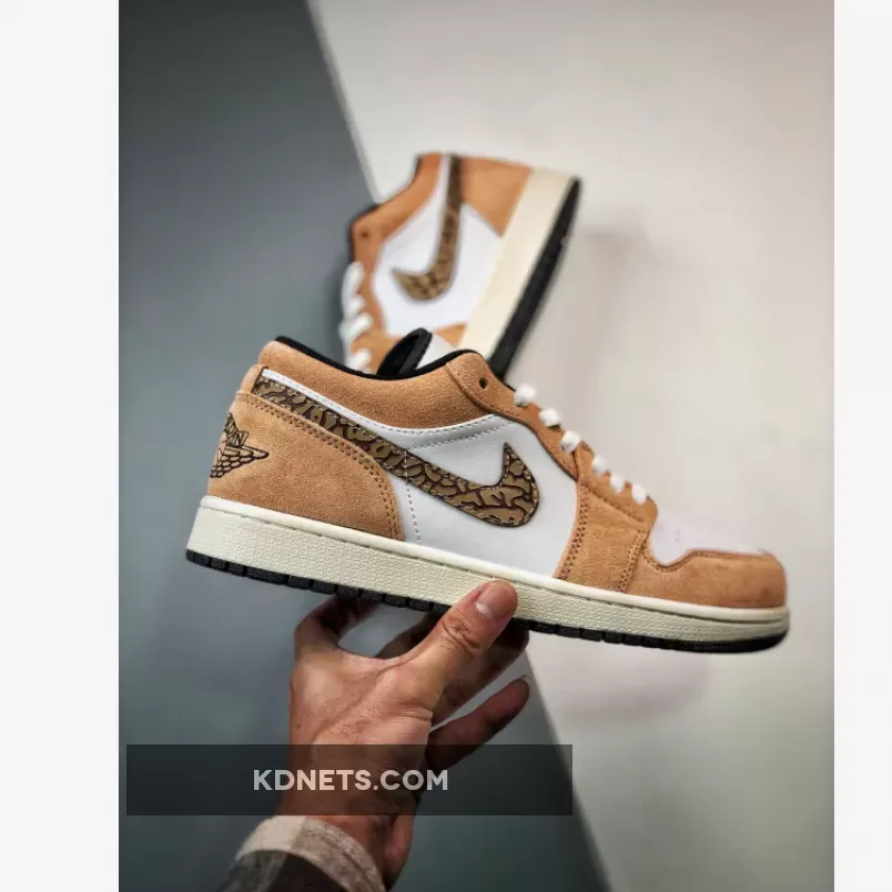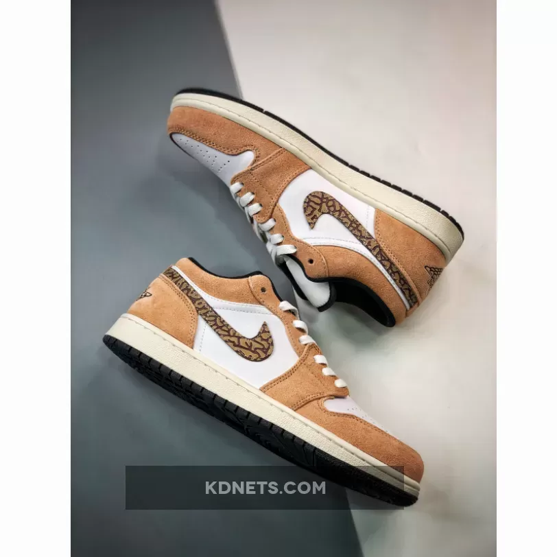 The Air Jordan 1 Low SE Brown Elephant is a low-top take on the eclectic elephant print which lands on the signature Swoosh appliqué.
