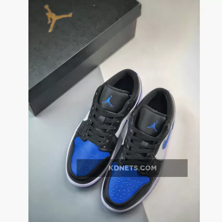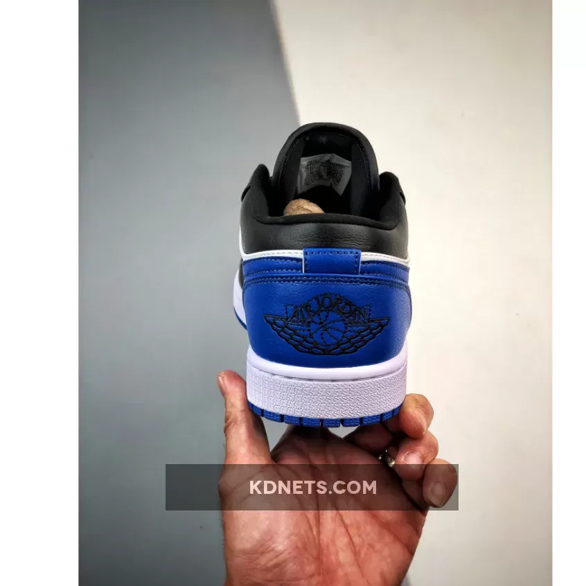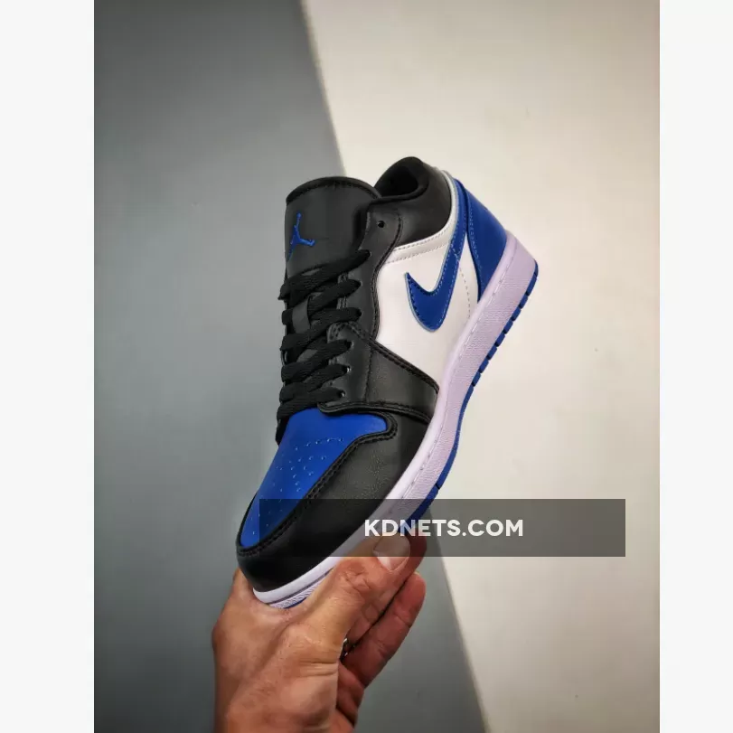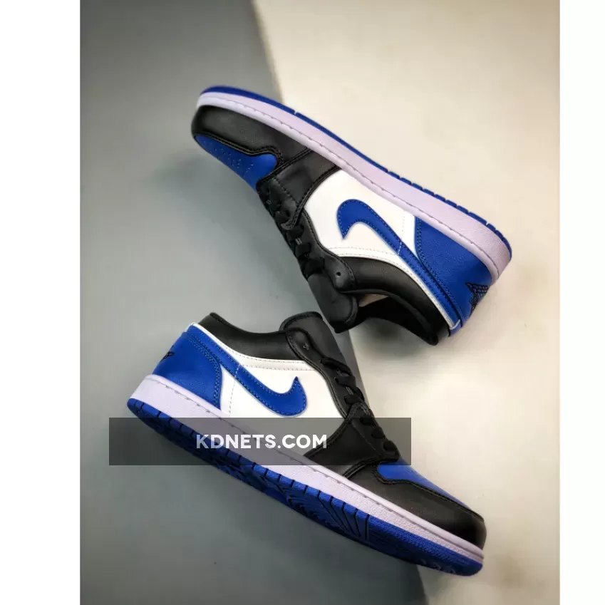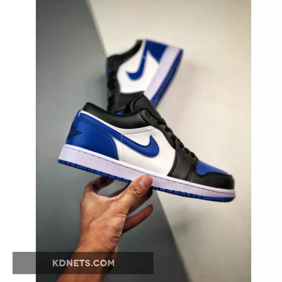 this new colorway of the Air Jordan 1 Low comes dressed in a White, Royal Blue, and Black color scheme. The sneaker is constructed in a full leather base paired with mesh used on the tongues and lining. it’s centered around a crisp withe mid-panel, with rear overlays, toe boxes, and Swooshes rocking royal blue, and forefoot overlays of black. Elsewhere you will find Black Wings on the heels. Royal colored Jumpman logos on the tongues and insoles atop a White midsole.Nylon tongues, laces, liners, and collars all arrive in black, too, with a simple white and royal rubber outsole rounding out the design.