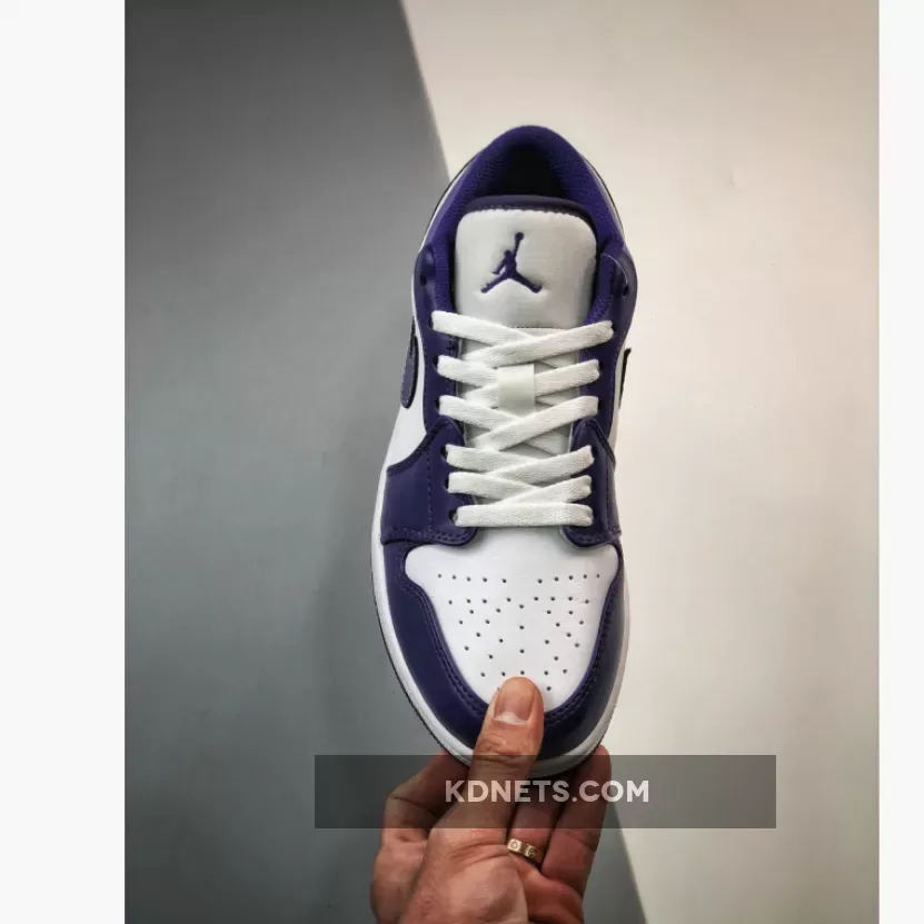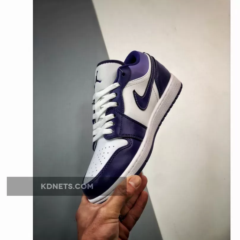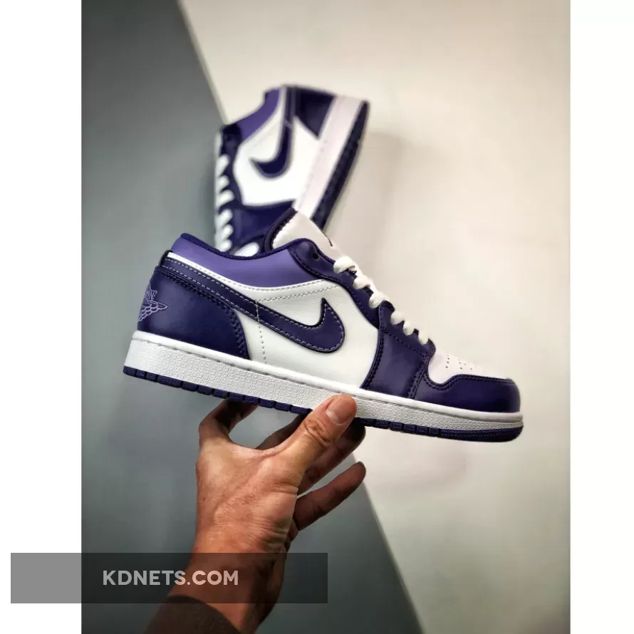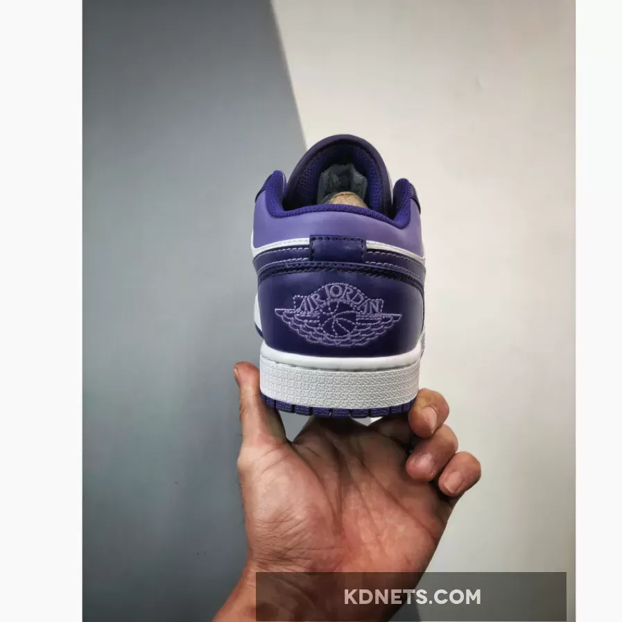 Arriving in an all-leather construction that’s smooth and supple to the touch, this Air Jordan 1 Low works on top of a crisp white base and is overlaid by deep purple panels across the toe, heel, lacing system, and Swoosh. and shoes overlay in a deep Blueberry hue to match the panelling along the toebox, medial sides, eye stays and heels. A tonal hit of blue enters via the collar flaps, amplifying the faceted look. As with other low-top renditions, the “Wings” motif is printed along the heels to graphic effect. Finally, the combination of mesh lining and perforated toeboxes provide ample ventilation.
