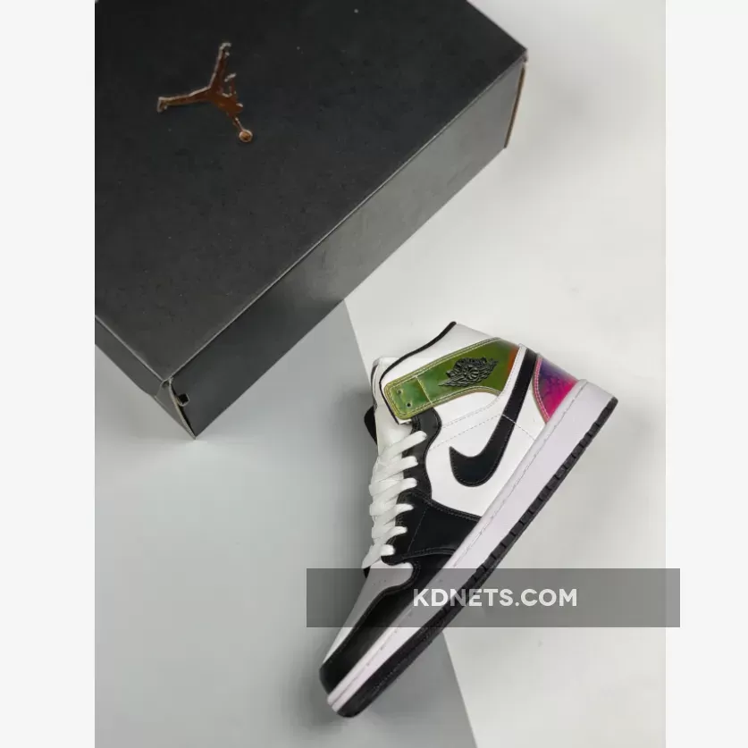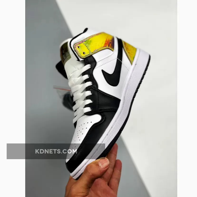 This offering of the mid-top Air Jordan 1 sports the signature “Black Toe” design featuring a White leather upper with Black overlays, Swooshes, and rubber outsole. Highlighting the shoe is its ankle flap, heel, and togune label that come in a heat-reactive finish to look very similar to a heat map.