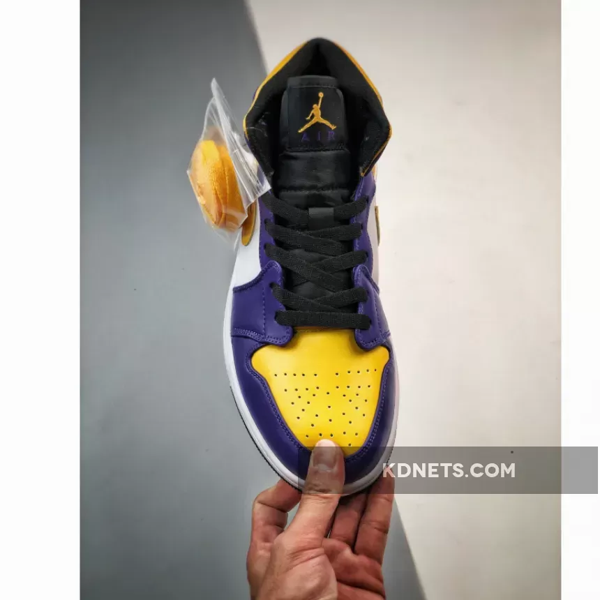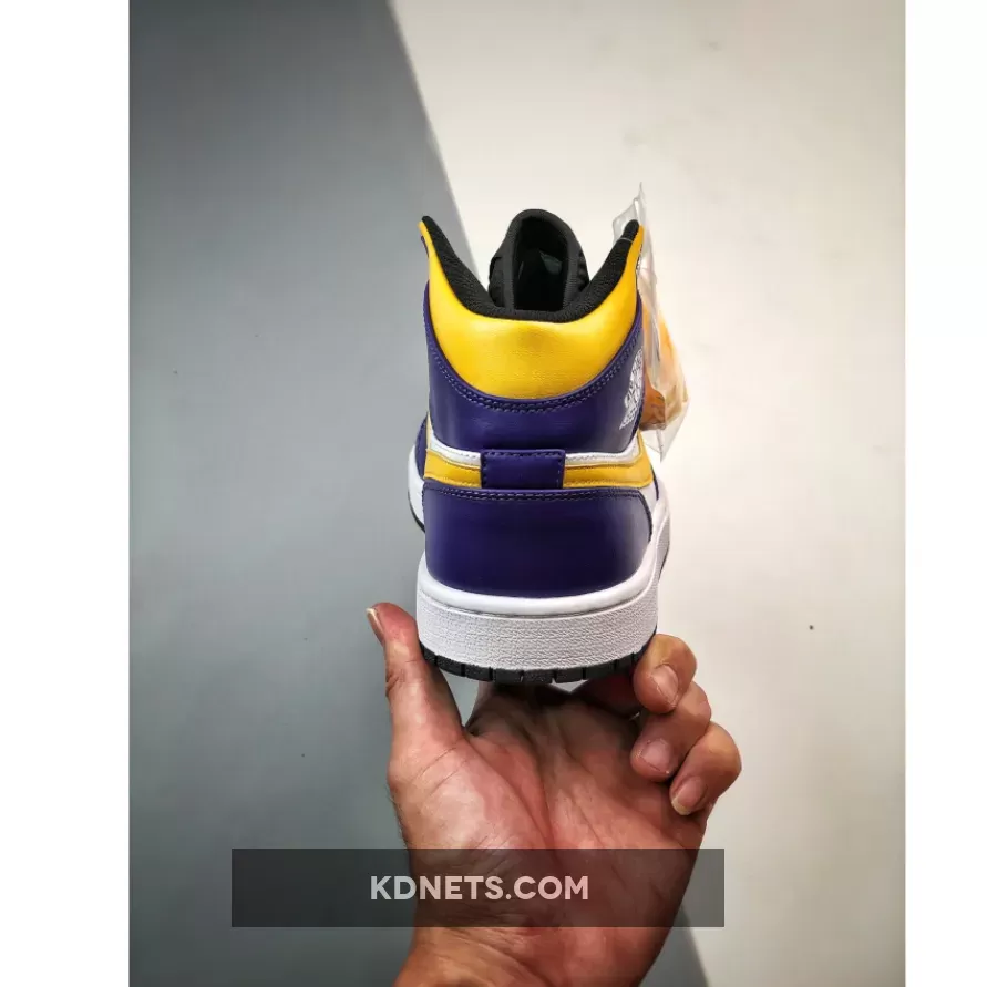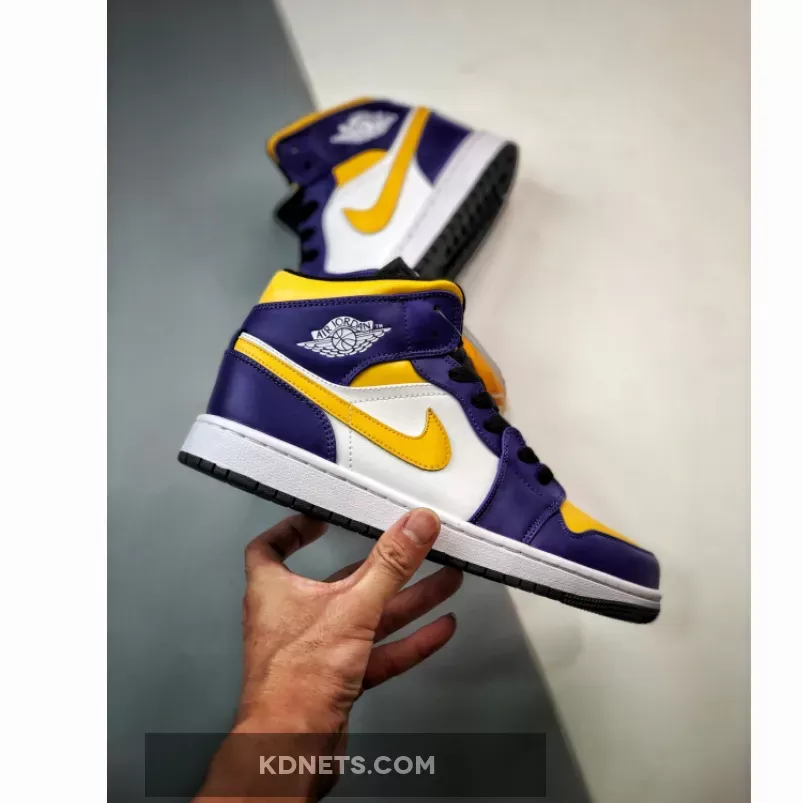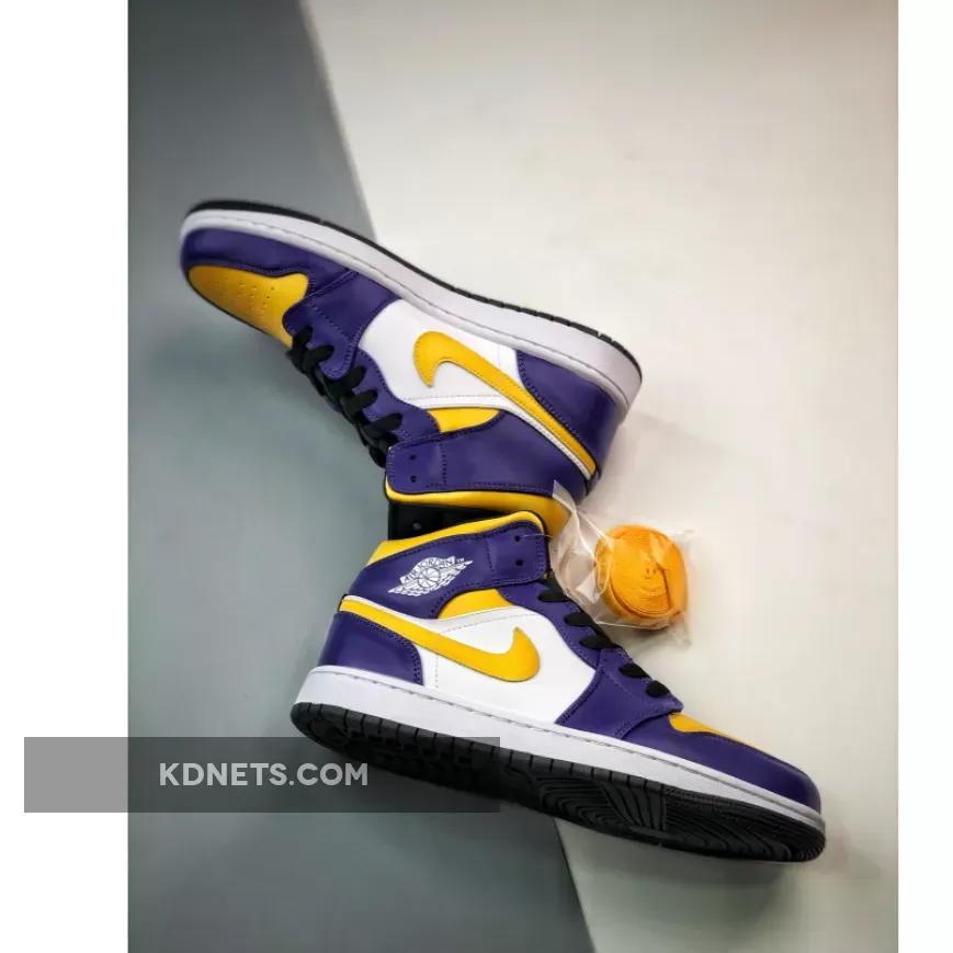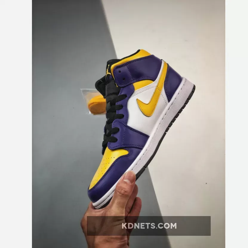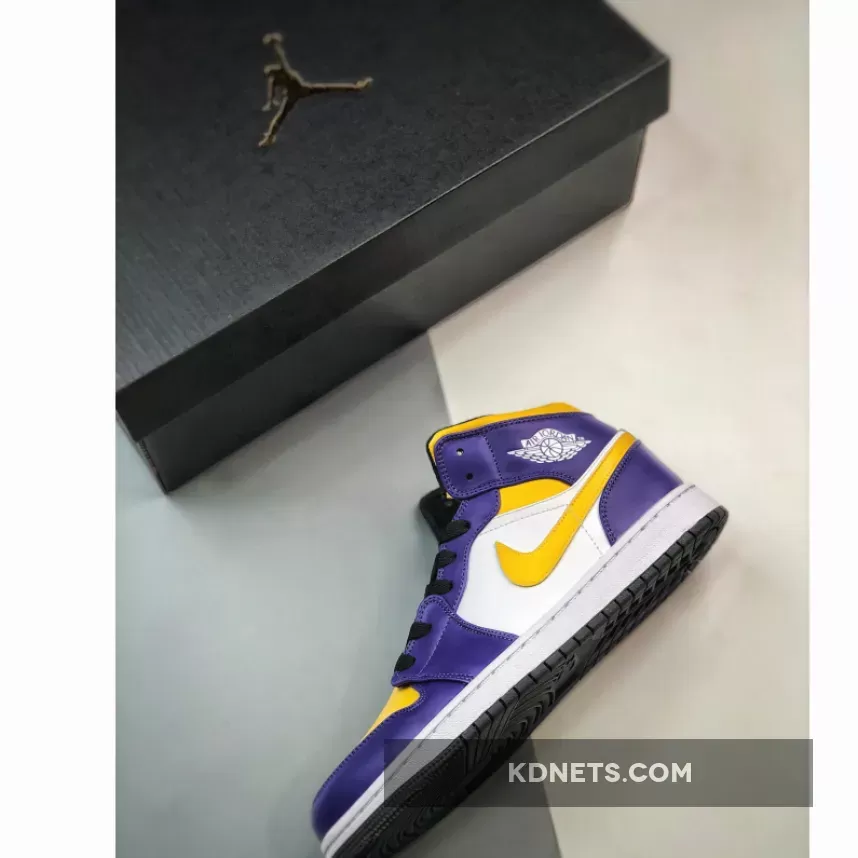 this brand-new Air Jordan 1 Mid features all of the colors that made the Lakers famous. The overlays on this sneaker are purple, while the toe box, Nike swoosh, and cuff are all yellow. A standard leather upper carries white at the base of the midfoot panel and on the Wings logo. From there, we are met with white side panels and a black tongue, which helps add some contrast to the entire sneaker. A White midsole atop a Black rubber outsole completes the design. Overall, it is a very fun and unique colorway that is definitely going to make Lakers fans excited.