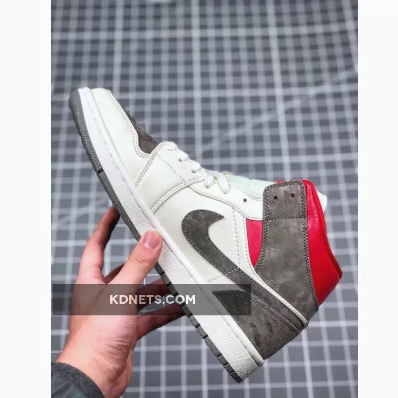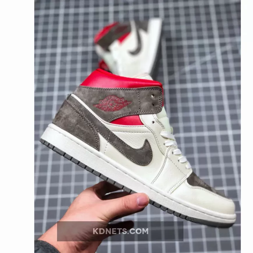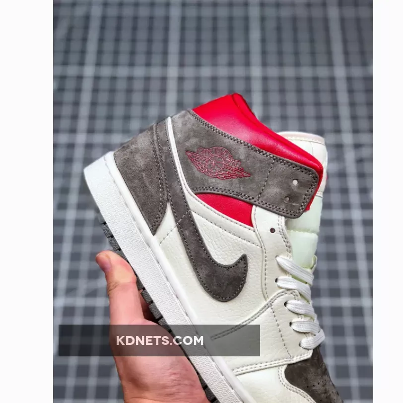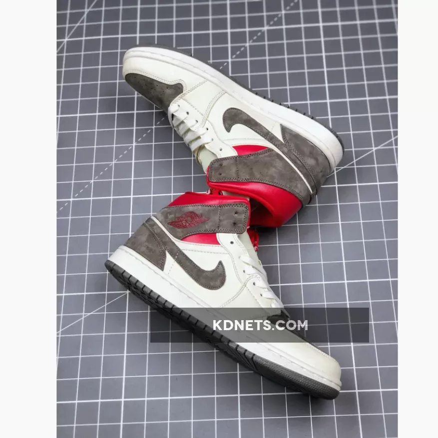 This Jordan 1 Mid is comprised of a sail tumbled leather upper with suede overlays. Red accents on the ankle and Wings logo paired with a grey outsole and a special Sneakersnstuff hangtag completes the design. These sneakers released in December of 2019 for $140.