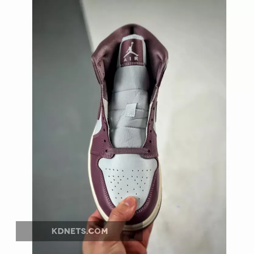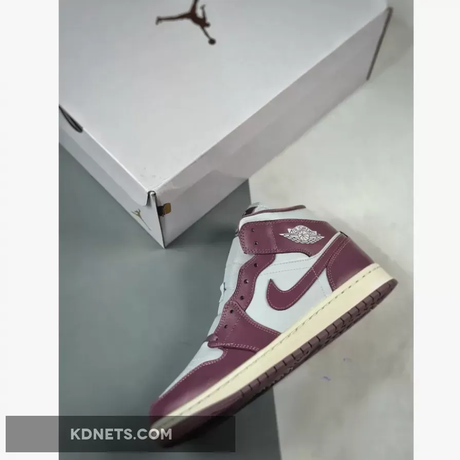 The Jordan 1 Mid boasts a stunning two-tone look. The dominant Sky J Mauve shades cover the mudguard, eyestays, heel overlay, and collar, while Pure Platinum leather graces the toebox, quarter panel, and collar, creating a well-balanced contrast. Mauve accents continue on the lace set, sockliner, Swooshes, and tongue tags, while the Jumpman and Jordan Wings logos boldly stand out in Pure Platinum. The sneaker is completed with a Sail midsole atop a Mauve rubber outsole.