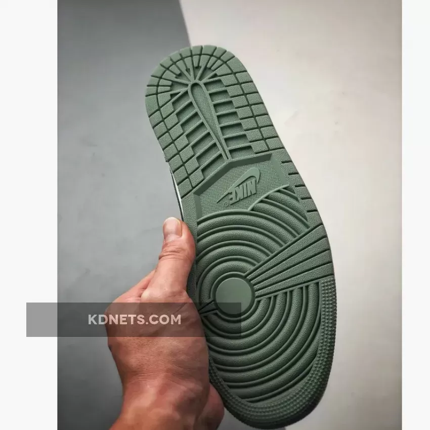 The classic white leather upper is central to the design, a nod to the Air Jordan 1’s mid-1980s origins and its enduring appeal. The sneaker retains its heritage feel with black collars and white nylon tongues, elements that are quintessentially Air Jordan 1. These traditional aspects are beautifully contrasted by the contemporary “Jade Smoke” color, which breathes new life into the classic design. This modern hue is tastefully applied to the overlays, laces, and rubber outsoles, creating a visually striking appearance. The Sail midsole enhances vintage vibes, nodding to classic sneaker design.