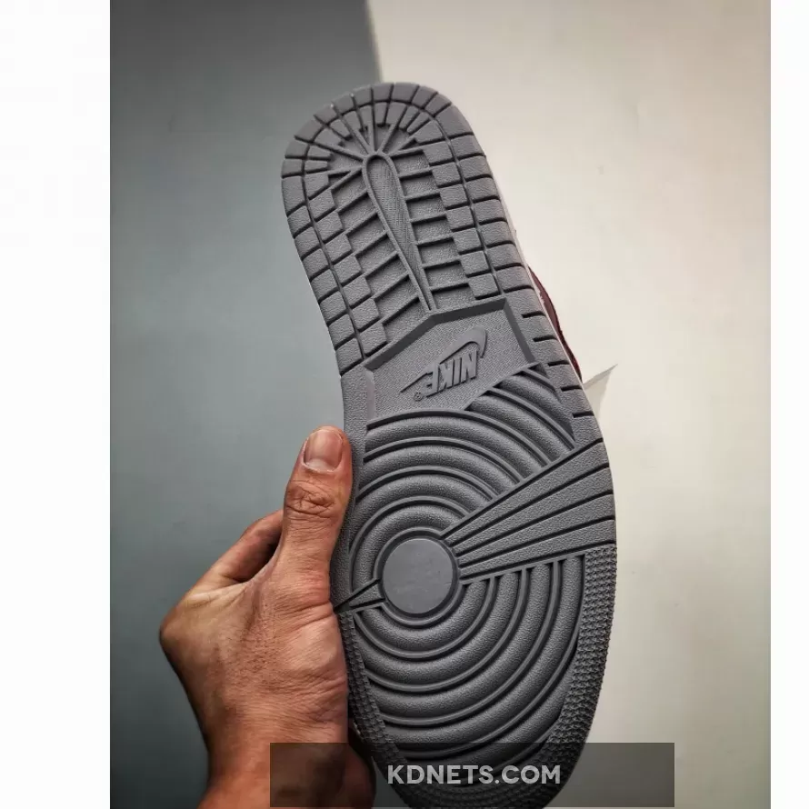 The ‘Cherrywood Red’ Air Jordan 1 features a burgundy and grey combo on the upper, with white finding a home on the logo hits and midsole.