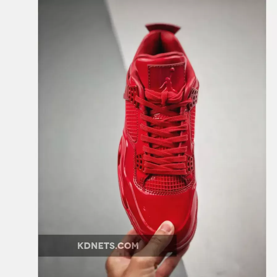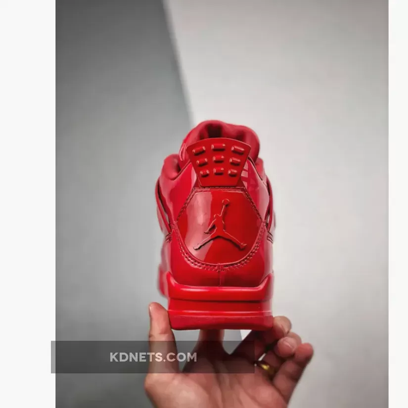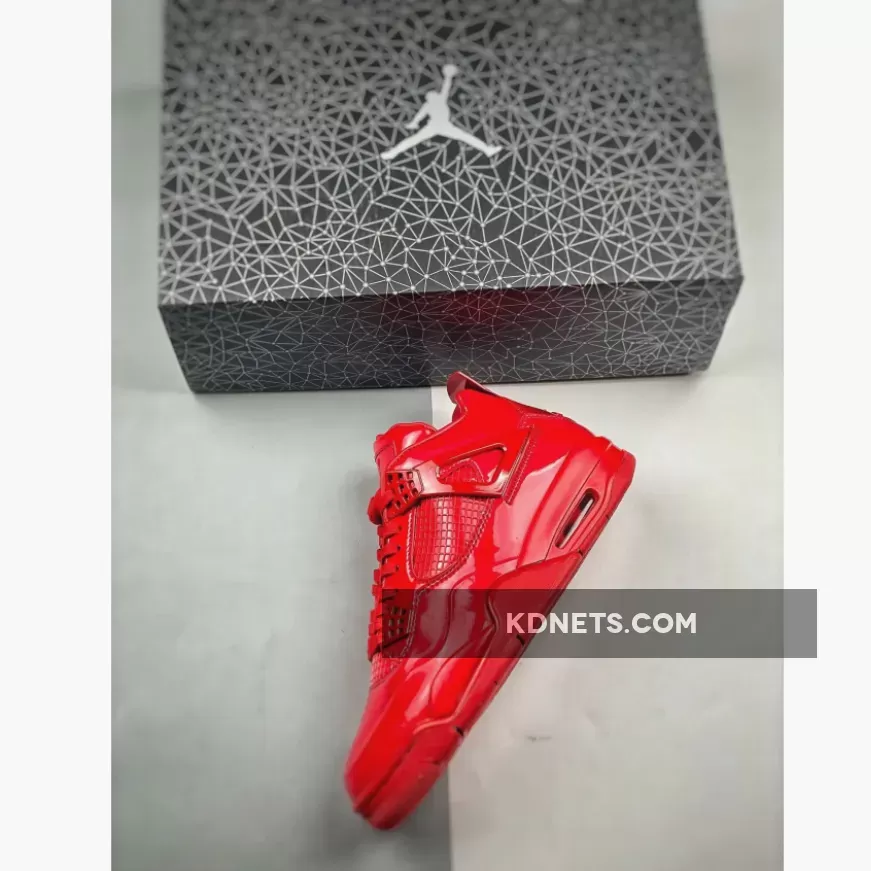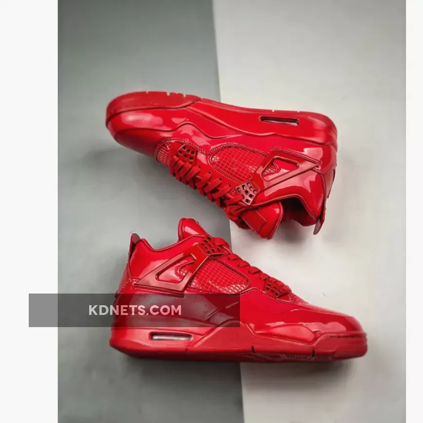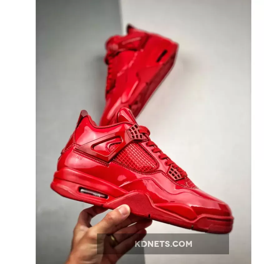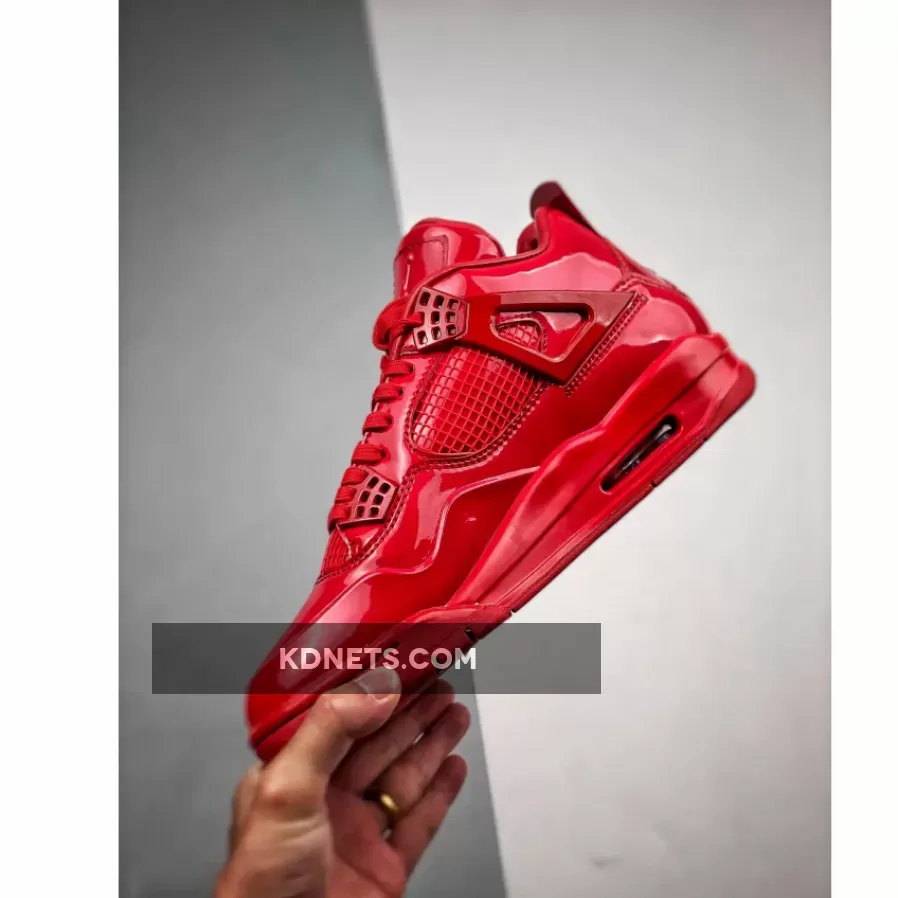 In 2013, Nike launched its ‘Elements Series’ where they applied inspiration and design aesthetics from one classic model to a different classic style. Mashing up the Air Jordan 4 and Air Jordan 11, the 11LAB4 series takes inspiration from the patent leather accents on the Air Jordan 11 and overlays it on the Air Jordan 4 silhouette. The ‘Red’ colorway features the classic Jordan 4 model with an all-over monochromatic patent leather finish in bright red.