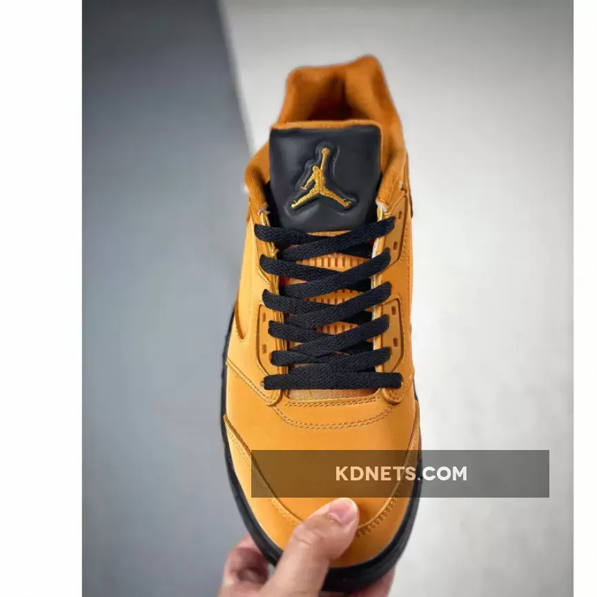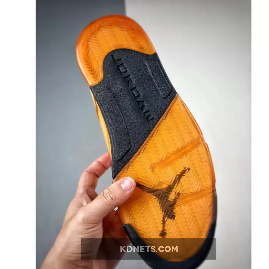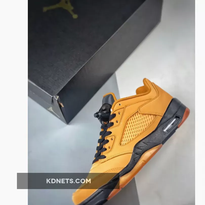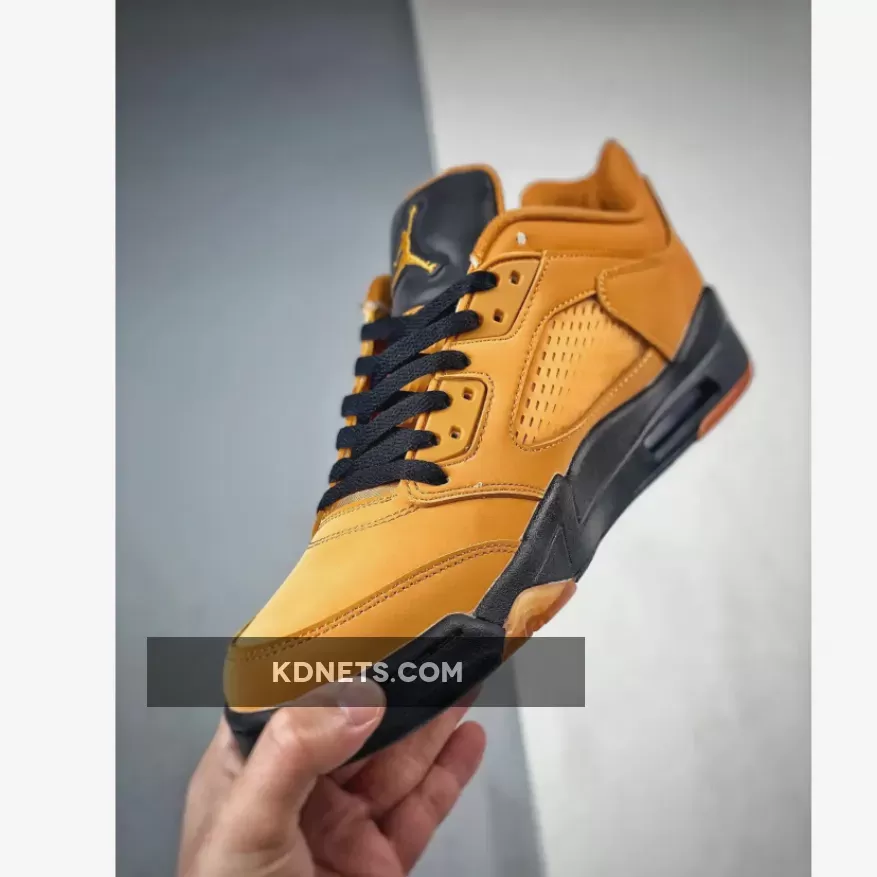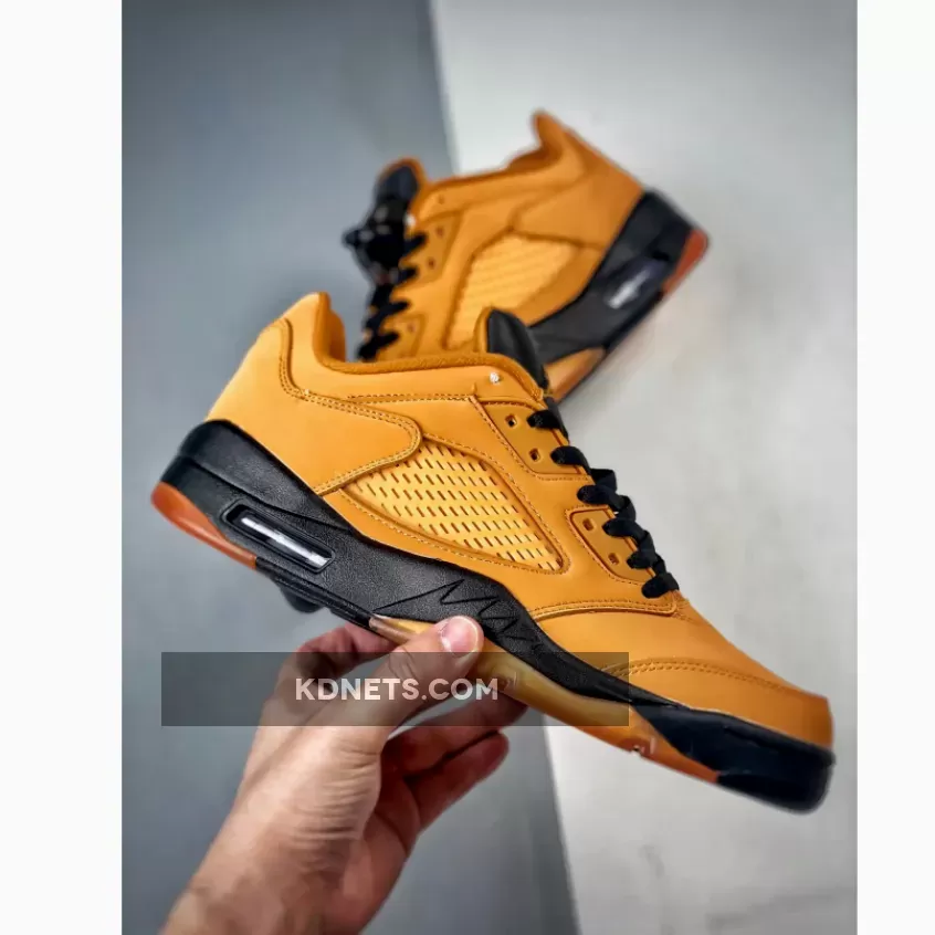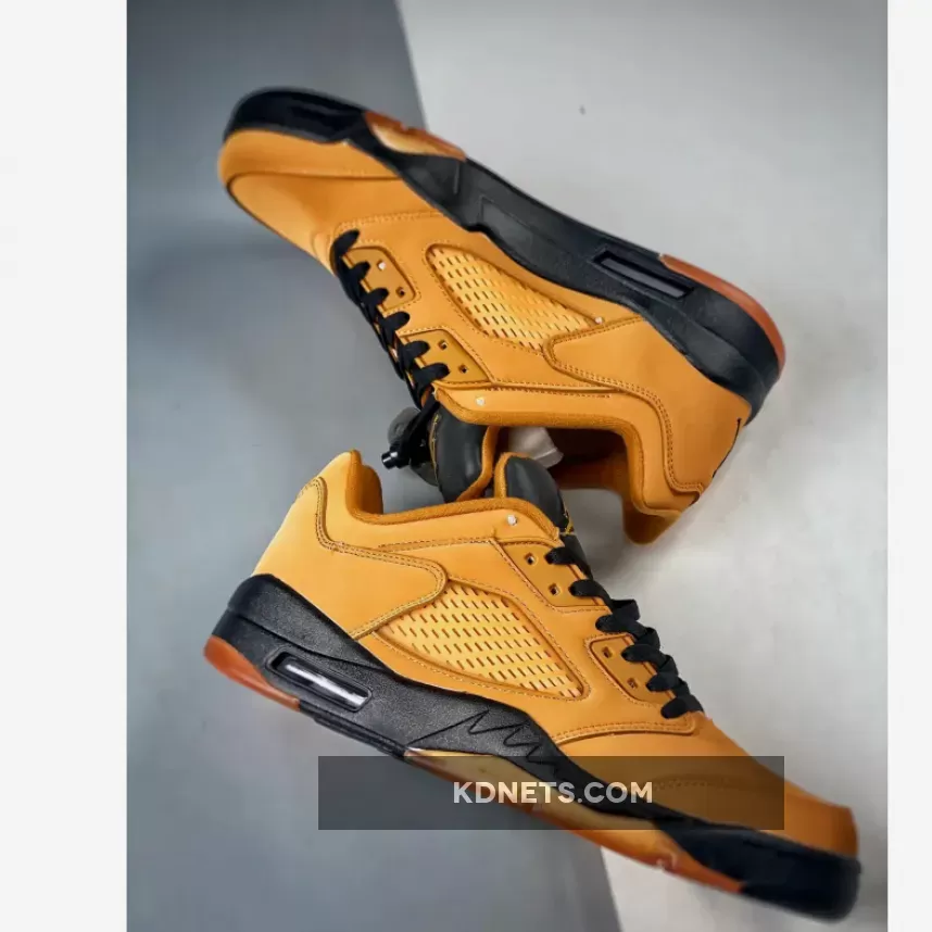 This low-cut AJ5 has a smooth leather upper in the titular dark yellow Chutney from heel to toe. Even the mid-panel translucent TPU mesh netting also follows the same hue. Bright red joins the mix of colours on the lace-lock accent and the embroidered Jumpman on the tongue. The leather tongues are in contrasting black. Utilizing Chutney on the base and liner while Black adorns the tongue, laces, and midsole. Finishing the look is a translucent outsole.