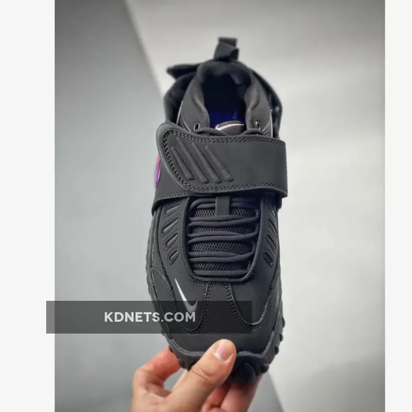 The AMBUSH x Nike Air Adjust Force ‘Psychic Purple’ delivers Yoon Ahn’s modern interpretation of the classic hoops shoe. The upper is constructed from black nubuck with a contrasting white mini-Swoosh on the tongue and forefoot. Carried over from the original 1996 design, a removable midfoot strap displays contrasting purple accents, while mismatched Ambush and Swoosh branding decorates the back heel. Underfoot, the outsole features an oversized Swoosh and rubber traction pods made in part with Nike Grind.