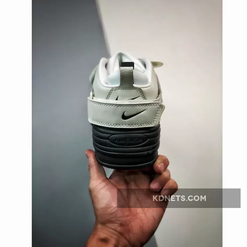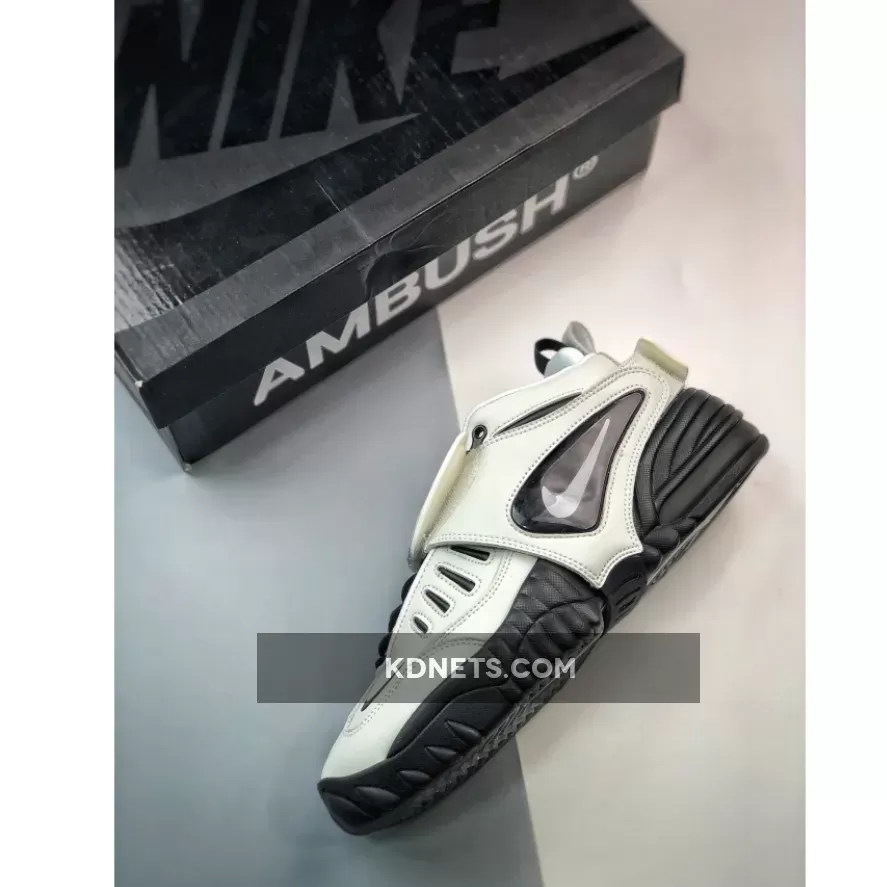 The AMBUSH x Nike Air Adjust Force ‘Summit White’ reunites the partner brands on a vintage basketball shoe originally released in 1996. The retro silhouette makes use of a white leather upper with an interchangeable strap that wraps around the midfoot and heel. The latter features mismatched Ambush and Swoosh branding on the left and right shoe. A contrasting black finish is applied to the sculpted midsole, fitted with visible Air-sole cushioning in the heel and supported by durable rubber pods under the forefoot and heel.