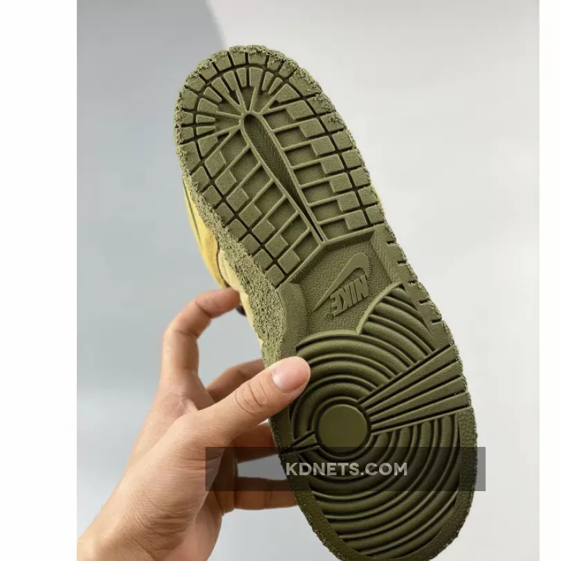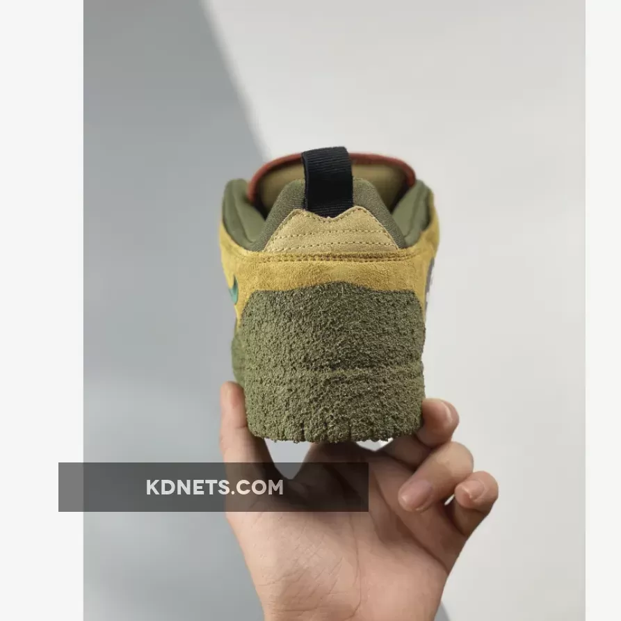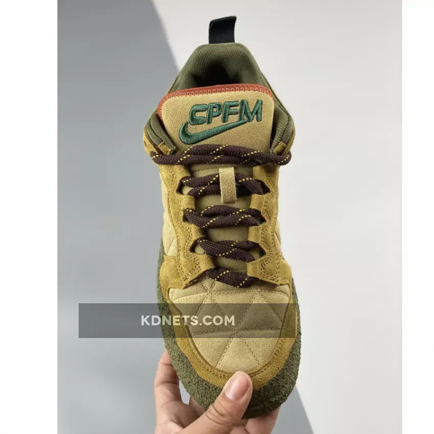 Cynthia Lu-led streetwear brand Cactus Plant Flea Market has collaborated again with Nike to bring us the nature-inspired Cactus Plant Flea Market x Nike Dunk Low Grass. The base of the upper is in light green quilted suede, channeling gardening gloves, while the overlays on the toe cap, mudguard and eyestay panels are in moss green suede while the collar flap is a slightly fuzzier suede in the same colour. The shoe also has mismatched elements. The right shoe features brown rope-like laces, embroidered CPFM and a Swoosh in green on the tongue and an embroidered yin yang symbol on the lateral collar flap. The left shoe features moss green laces, and embroidered Nike text logo and swoosh in black on the tongue and an embroidered Nike Swoosh in green on the collar flap.