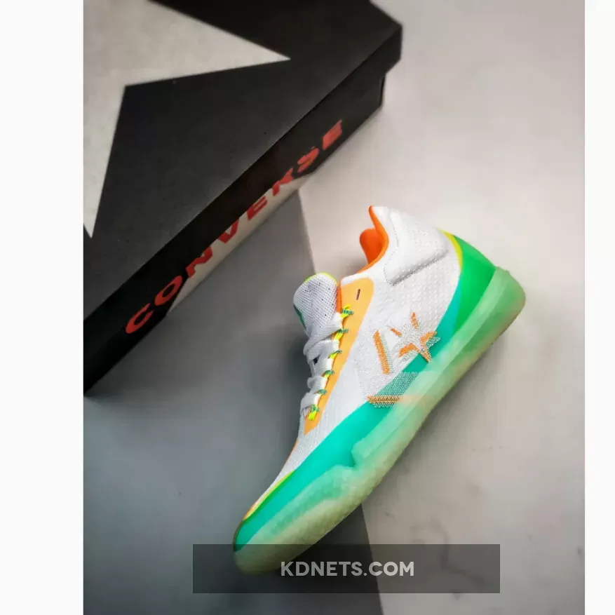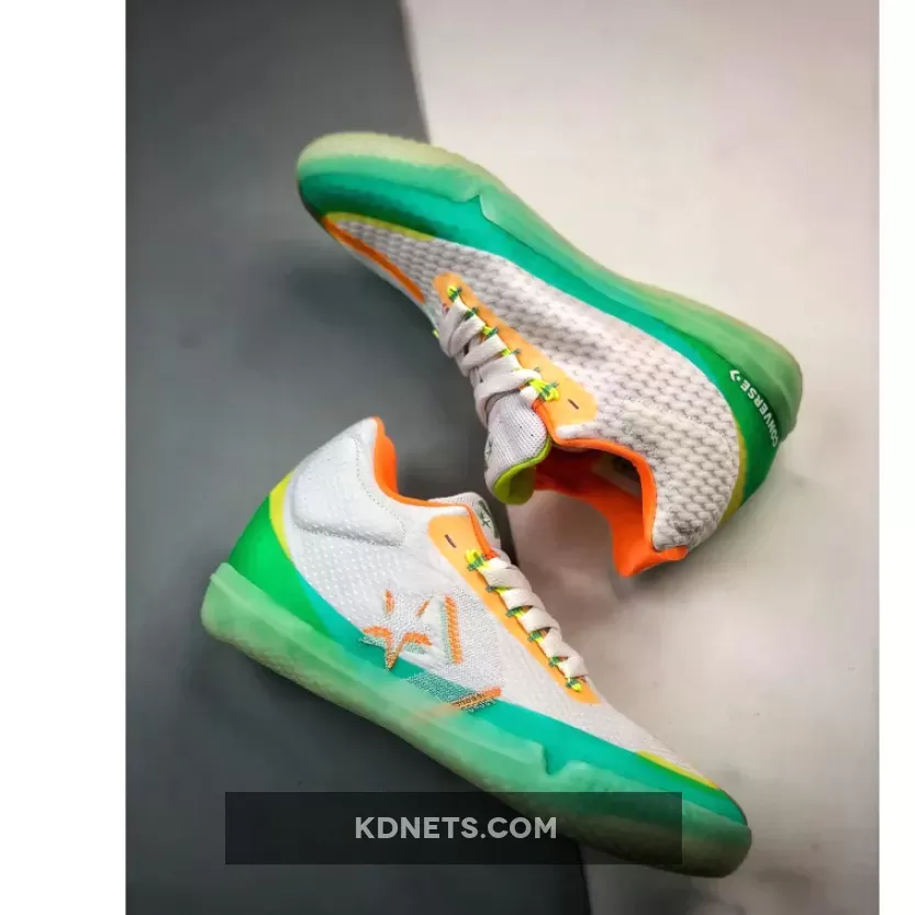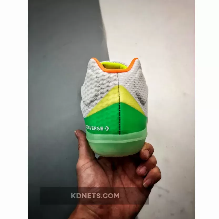 A performance basketball shoe, the All Star BB Evo Mid ‘Hi-Vis Collection – White Green Glow’ released as part of the Hi-Vis collection. Inspired by the Chuck Taylor All Star, the shoe’s white mesh upper is highlighted and supported by Fresh Yellow, Green Glow and teal no-sew overlays. The Chevron Star branding adds a glow-in-the-dark hit, matched by the rubber outsole that incorproates a diamond lug pattern for traction.