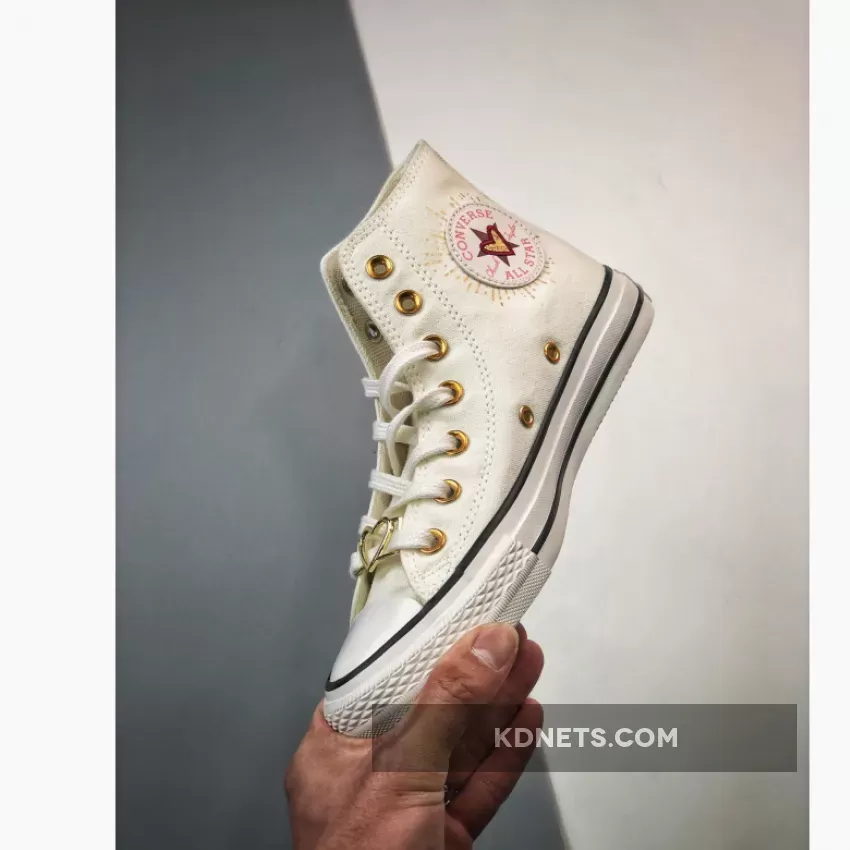 These Chucks go for the gold with bright details made to shine this Valentine’s Day. A mini red heart at the back heel gives your moves a beat. Plus a V-Day-inspired All Star patch radiates all day long.