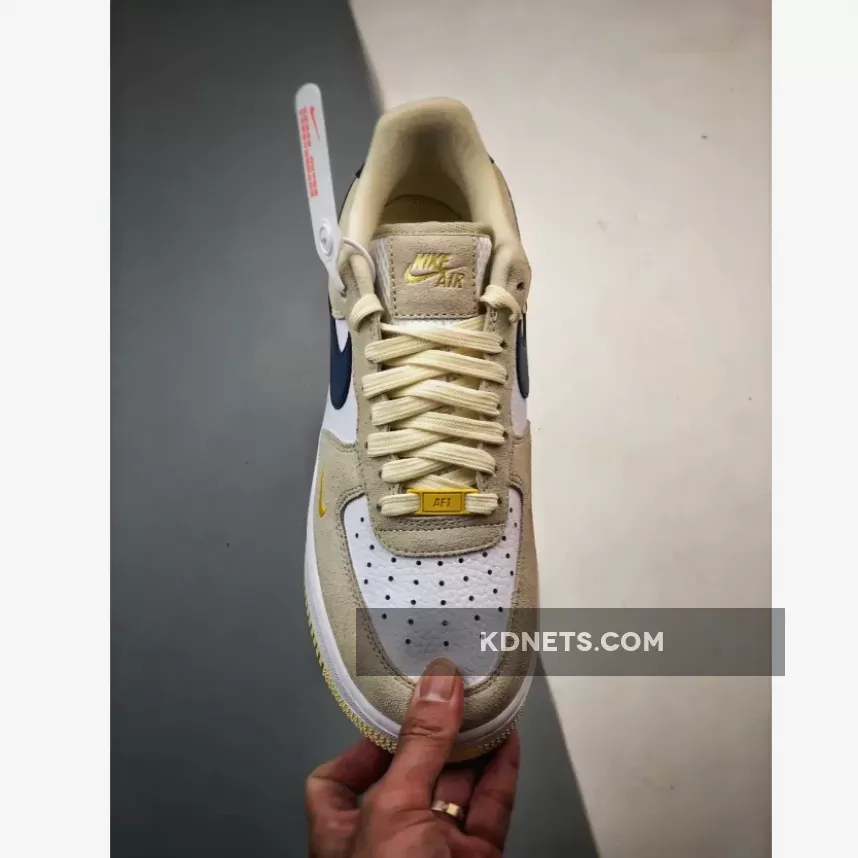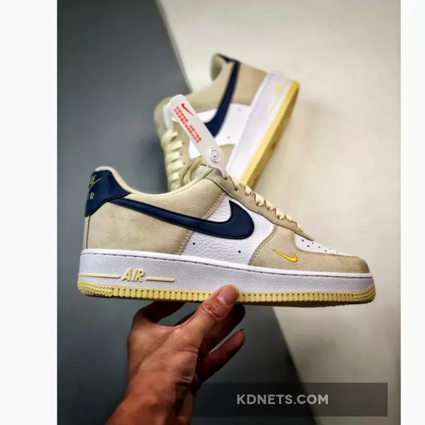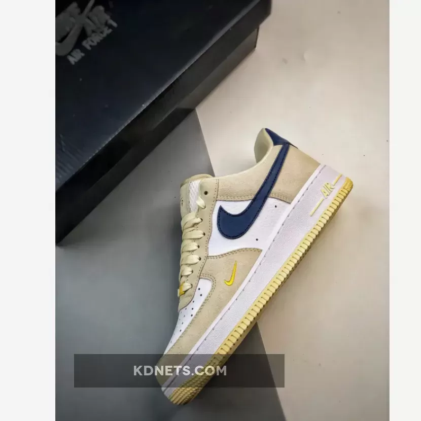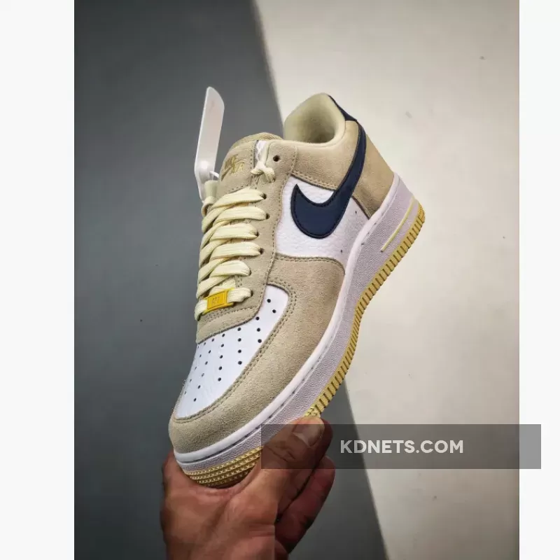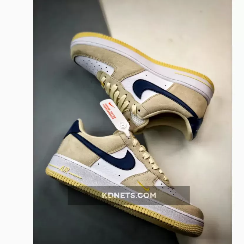 Fresh new colours for the 41-year-old sneaker icon. Check out the premium upper material of this Nike Air Force 1 Low “Tan Navy Gold”.The Nike Air Force 1 is never scarce when it comes to colourways. It’s one of the reasons why this 80s basketball shoe became a fan-favourite sneaker outside the court. Designed by Bruce Kilgore, the 1982-born AF1 is the first Nike basketball shoe to use the patented Nike Air cushioning. Embedded within the rubber cupsole, Nike Air was Nike’s greatest cushioning system during that time. The Nike Air Force 1 first came as a High, with an ankle strap for lockdown. A Low version soon followed, and the Mid arrived in the 90s. This colourway features a white pebbled leather base with tan suede overlays. Navy blue accents cover the pebbled leather Swoosh and heel panel. Yellow colours comprise the embroidered Swoosh near the forefoot, lace dubrae, and debossed Nike labels on the tongue and heel. Jersey mesh makes up the tongue for more ventilation. The cream white outsole completes this fresh summer-friendly AF1 Low.