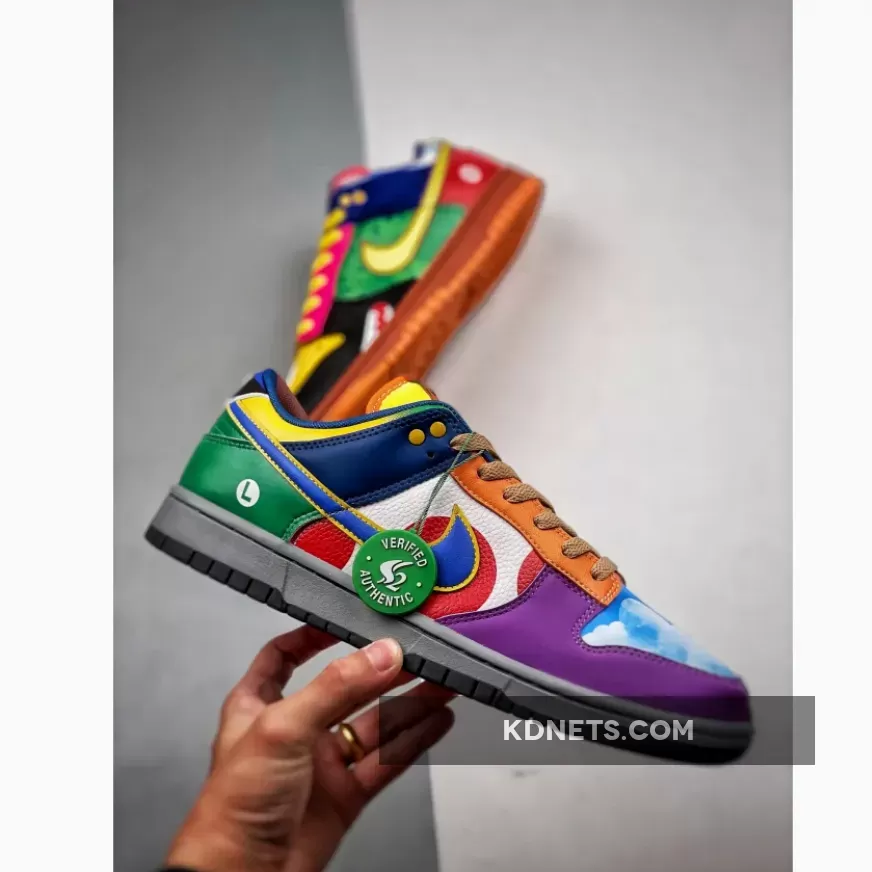Andrew Chiou, a renowned shoe designer, has reimagined the legendary Nike Dunk Lows. The design of these low-top trainers draws inspiration from Mario, Bowser, Yoshi, Luigi, and other characters and items from the game’s memorable levels. It might require some time to understand, but each of the many colors and patterns has a specific significance within the overall framework of the game.