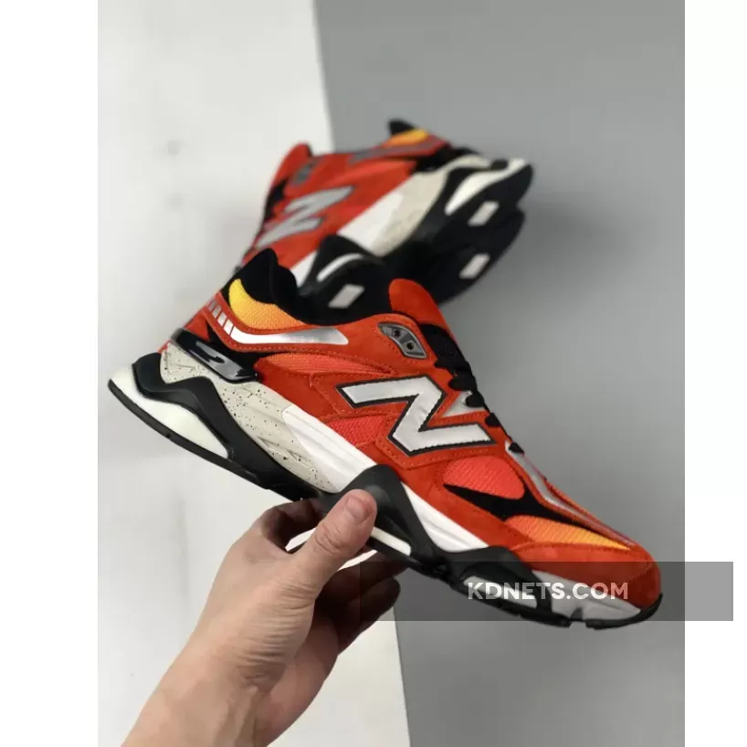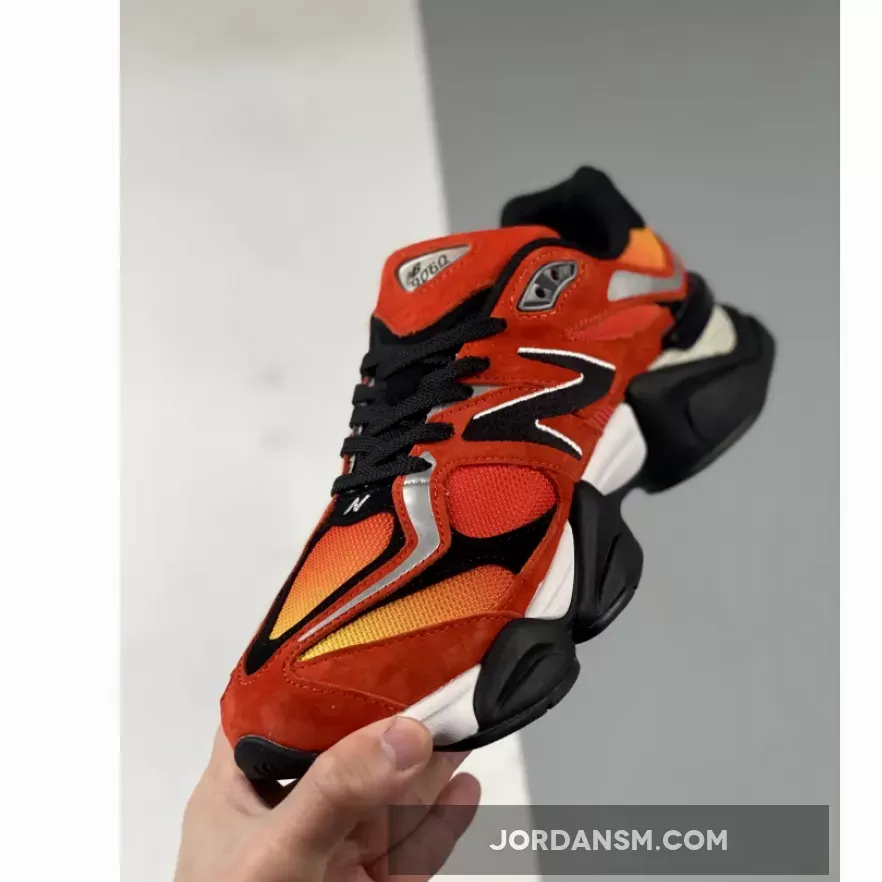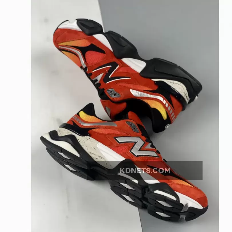 The “Fire Sign” New Balance 9060 boasts striking Orange, Red, and Yellow hues that catch the eye. Crafted from a combination of suede and mesh, it’s a blend of comfort and style. Notably, the shoe flaunts a captivating gradient pattern on its mesh base, with added elegance from the Red suede overlays. Black accents are tastefully sprinkled throughout, while the Metallic Silver “N” logos on the sides add a touch of finesse. The design is rounded off with contrasting elements atop a White speckled midsole and a durable Black rubber outsole.