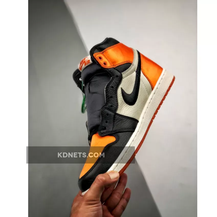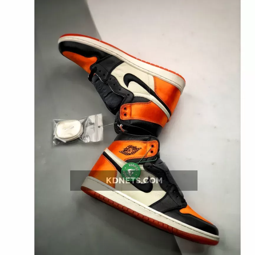 Much like the previous releases, this stylish iteration of the Air Jordan 1 will come in the popular “Shattered Backboard” color scheme. The shoe will come fully covered in a satin construction providing a luxury feel.