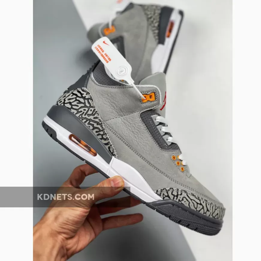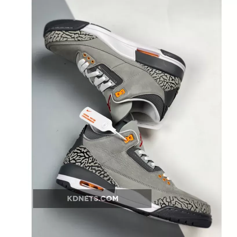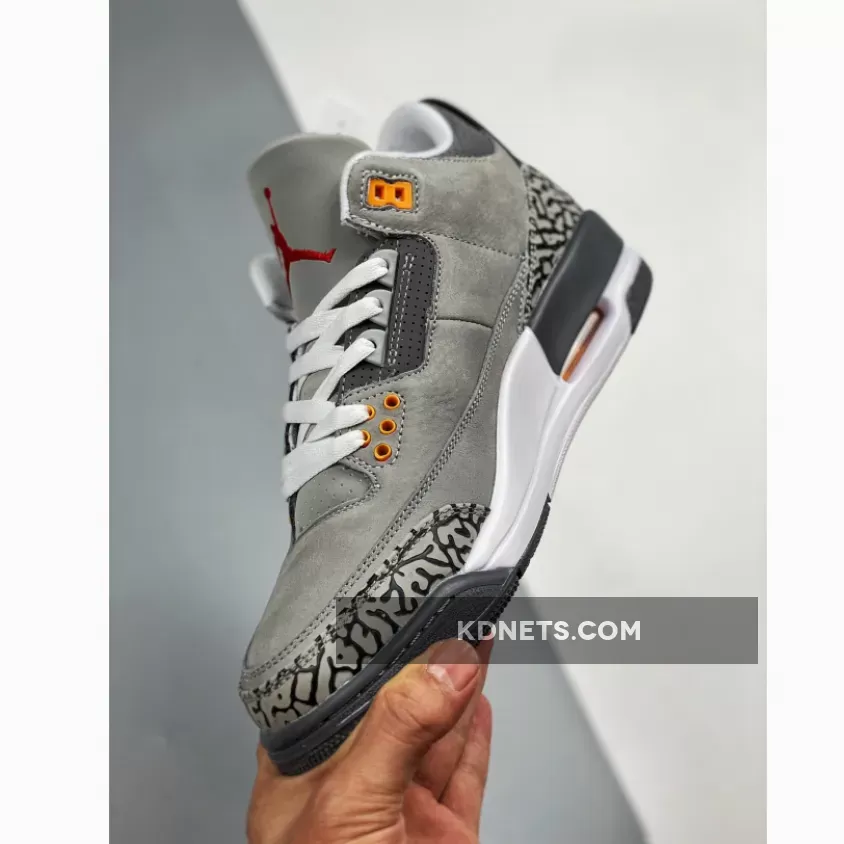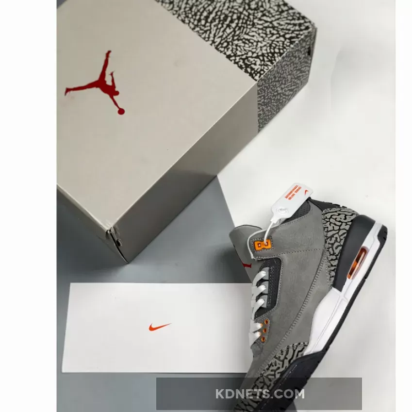 Solid colorway on the AJ3. Quality materials, comfy & stylish. Perfect for daily wear. #AirJordan3 #CoolGrey #SneakerGameStrong 💪.