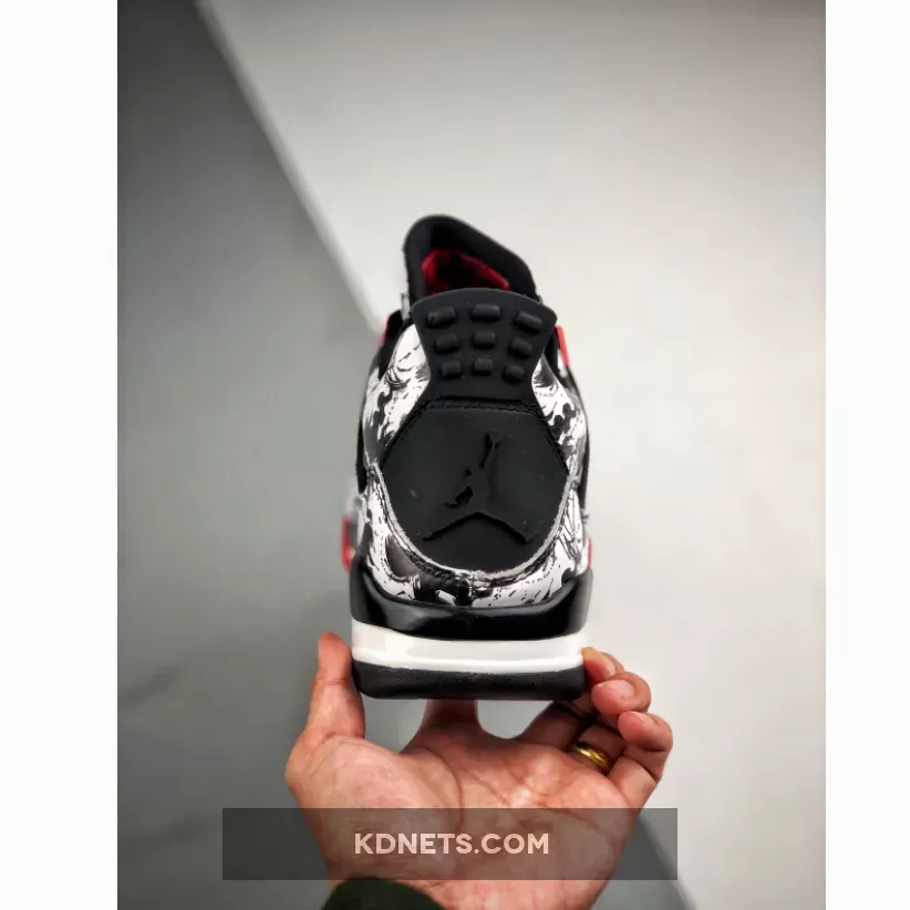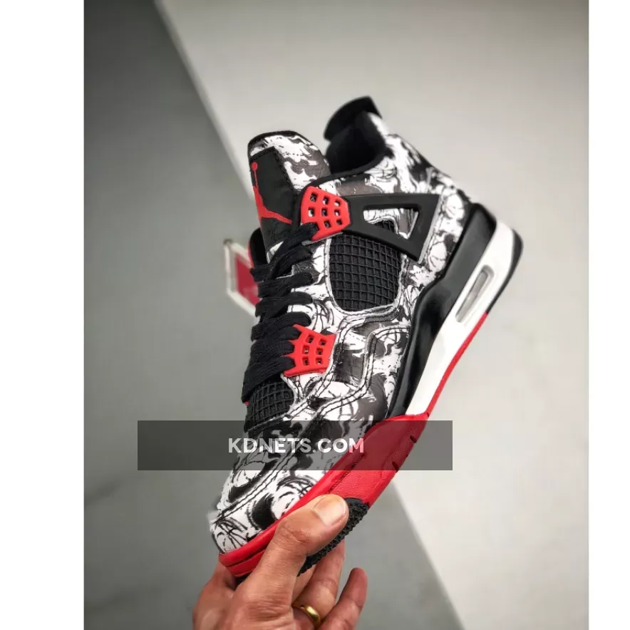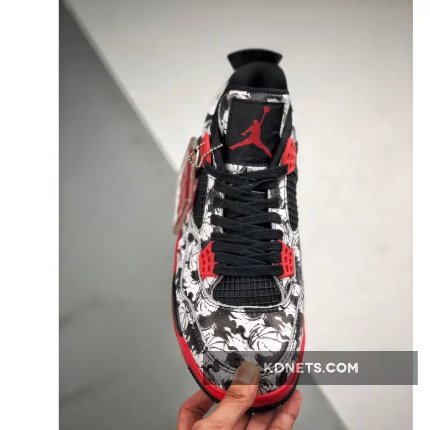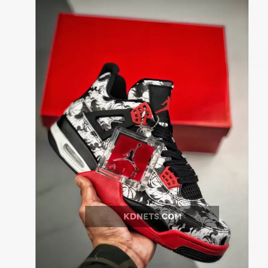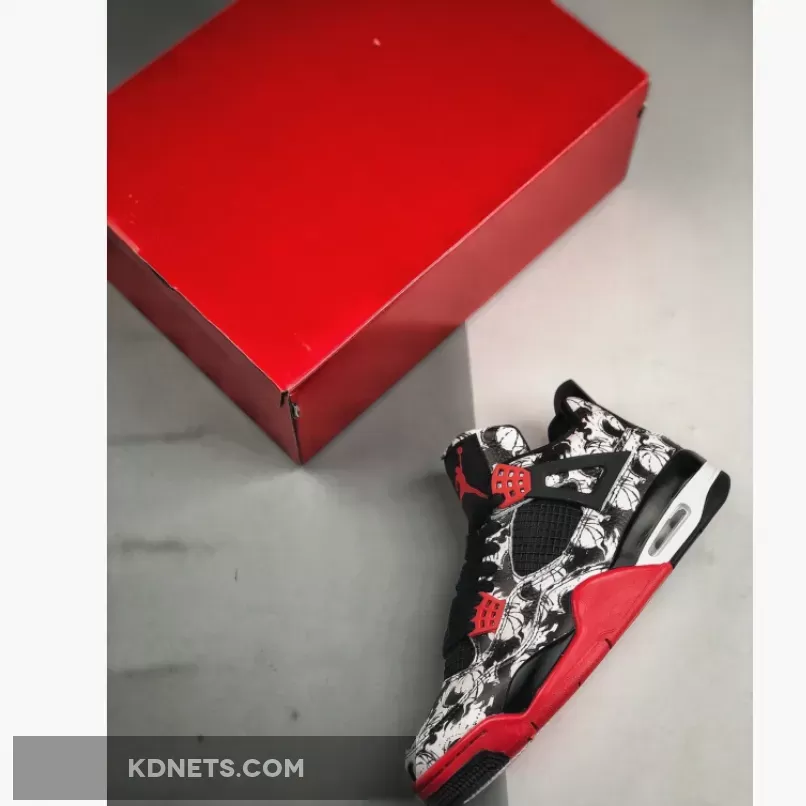 The Air Jordan 4 ‘Tattoo’ offers a striking design with its all-over tattoo-inspired graphic. The combination of black, fire red, and white colors creates a sleek and stylish look. The tattoo motif adds a unique and artistic touch that sets this Jordan 4 apart from other colorways. Overall, a great pair of sneakers for fans of the legendary silhouette.