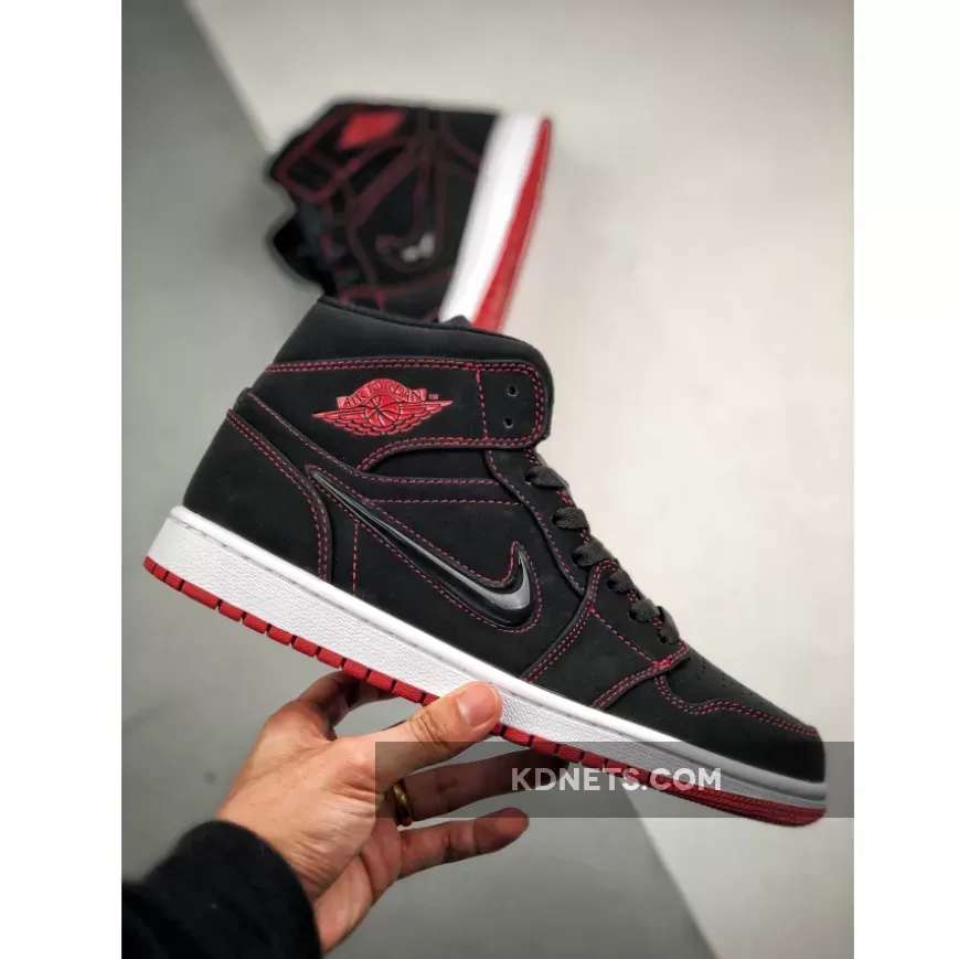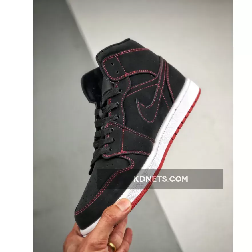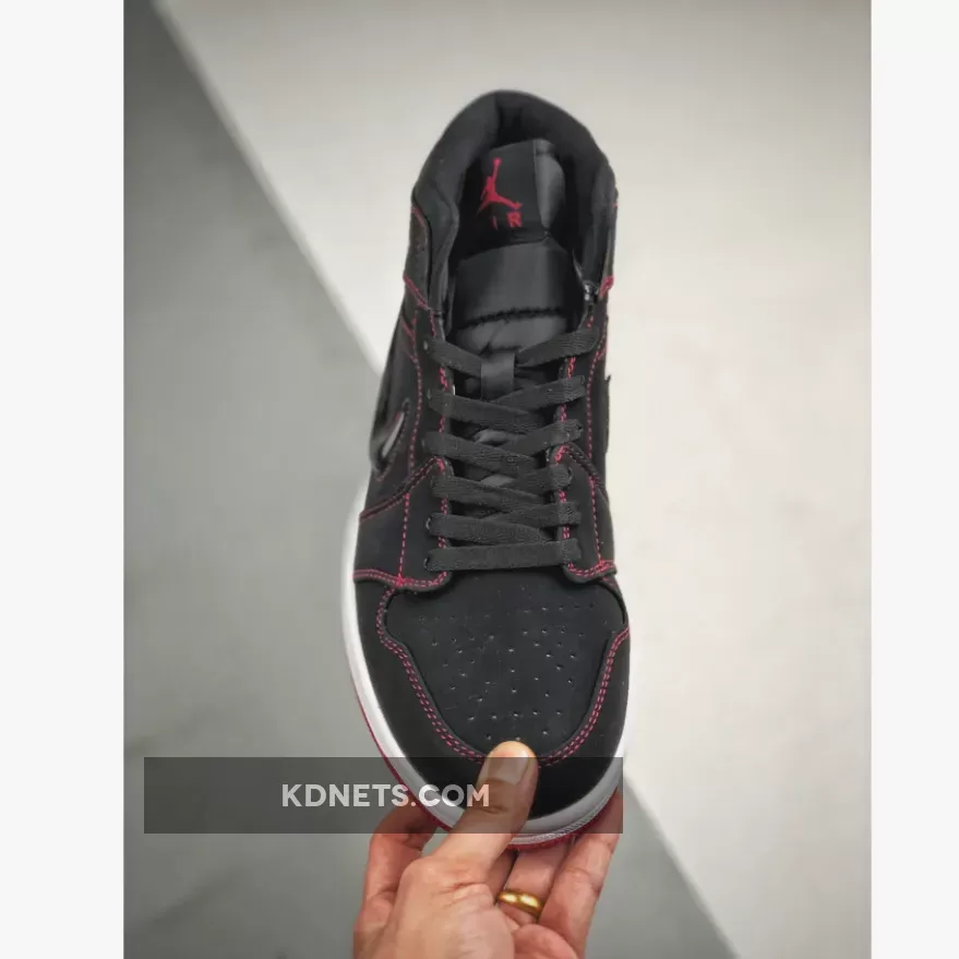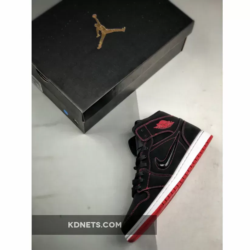 This offering features a Black nubuck upper with Red stitching throughout and special laces that features text that reads “Who Said Man Was not Meant To Fly” – which is a nod to an OG Air Jordan 1 ad. A jeweled Swoosh logo on the sides, Fearless hangtag atop a White midsole and Red rubber outsole completes the design.