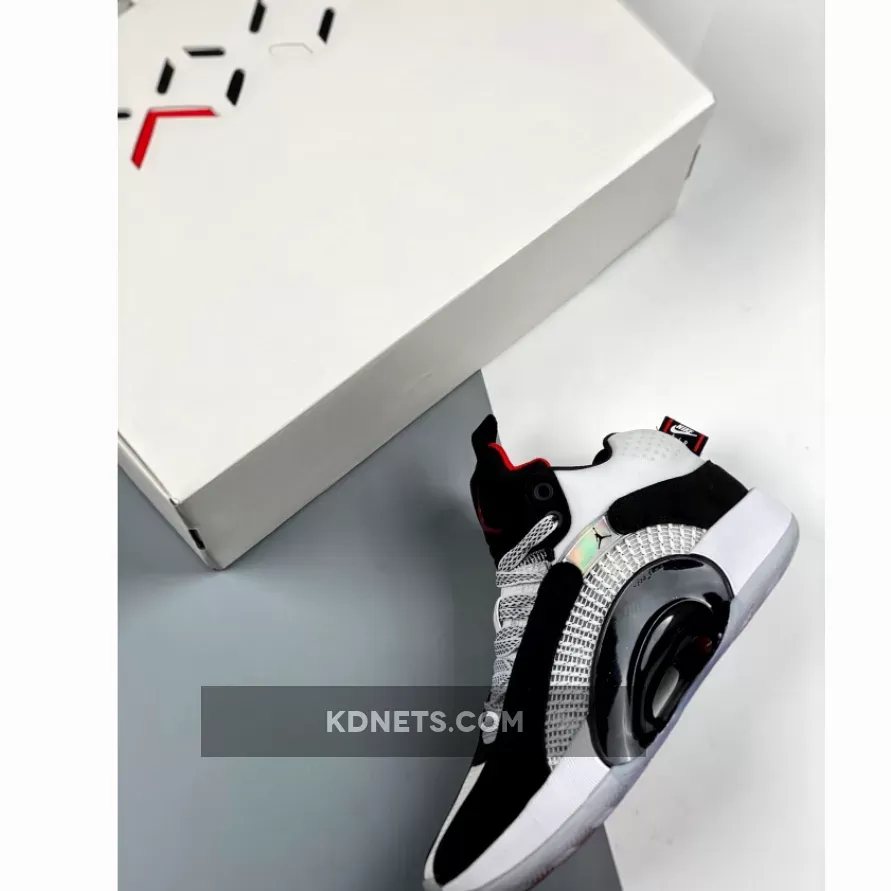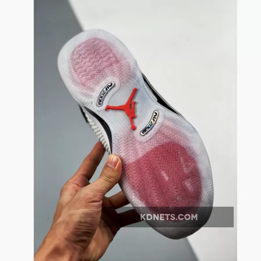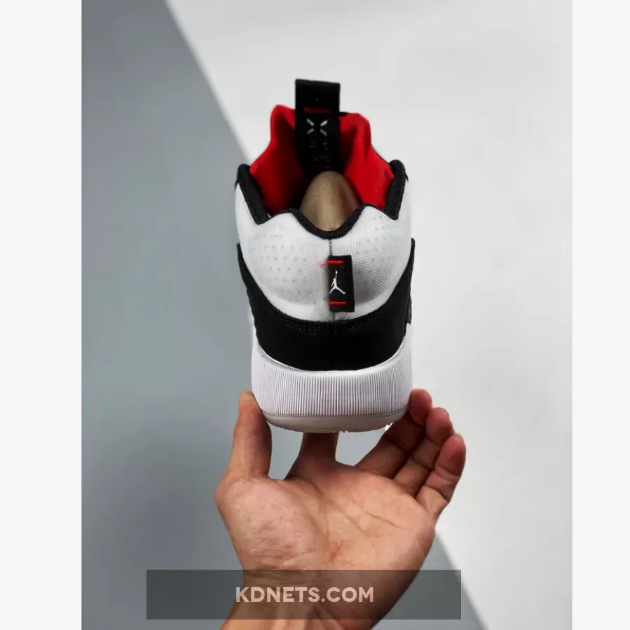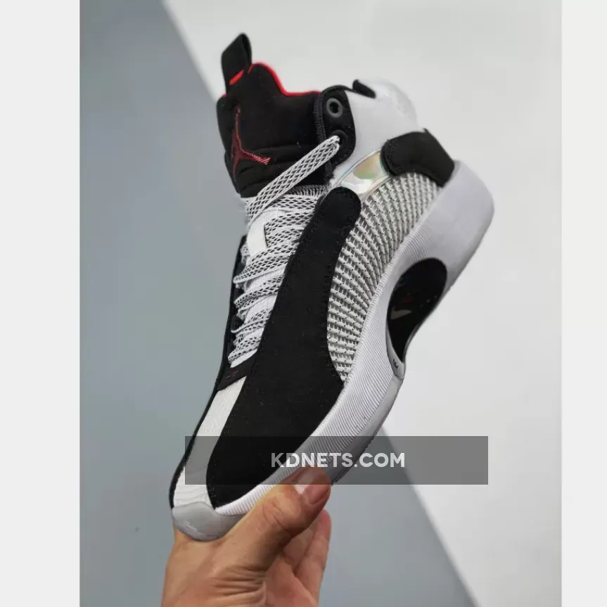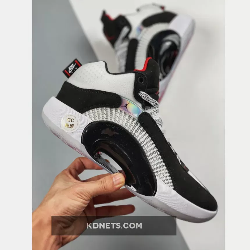 Dressed in a White, Black, and Fire Red color scheme. This Air Jordan 35 features a White upper with Black nubuck overlays.