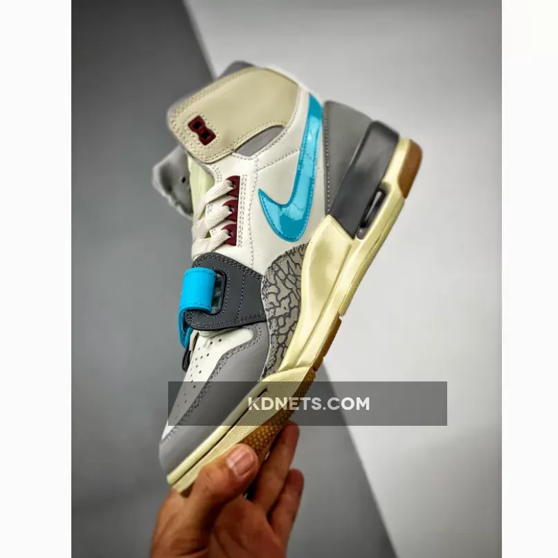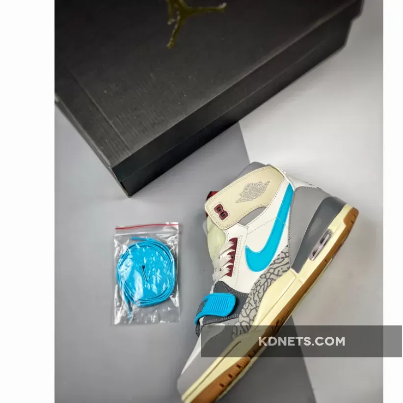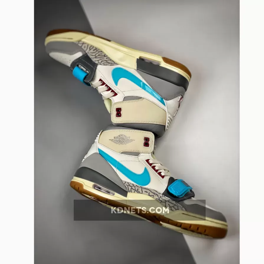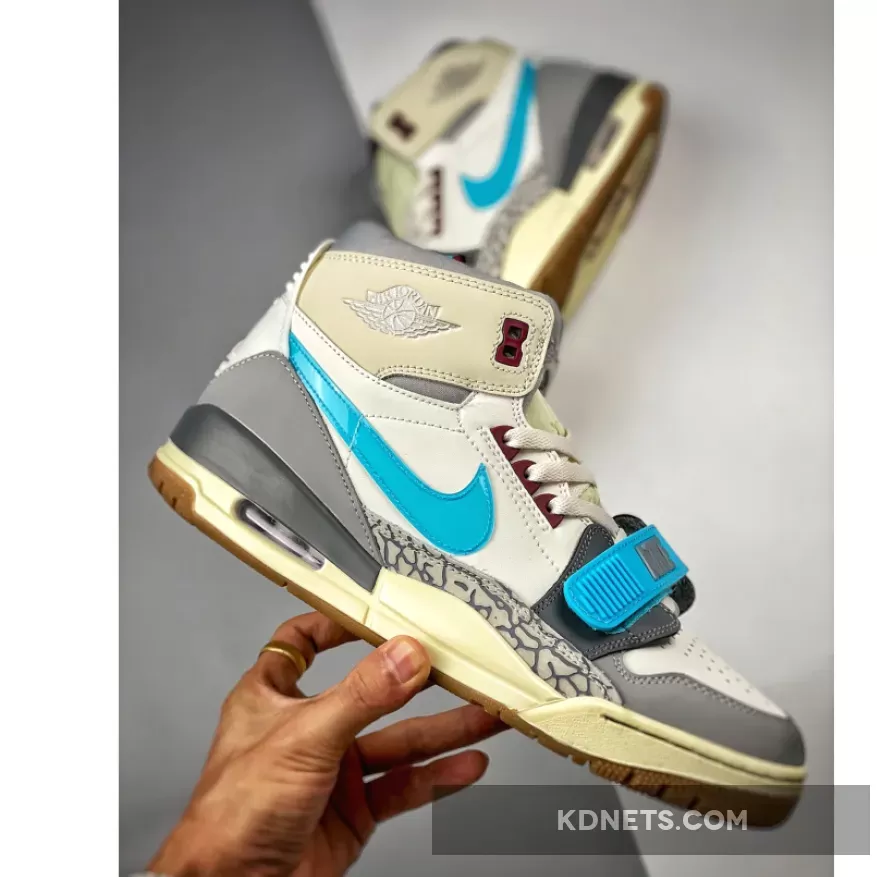 Unlike the other models, this offering of the Jordan Legacy 312 doesn’t include any special details other than being dressed in the pack’s color blocking. It comes constructed in a mix of mesh, leather, and nubuck materials with signature elephant print and bold Blue TPU Swooshes. A Sail midsole atop a Gum rubber outsole completes the design.