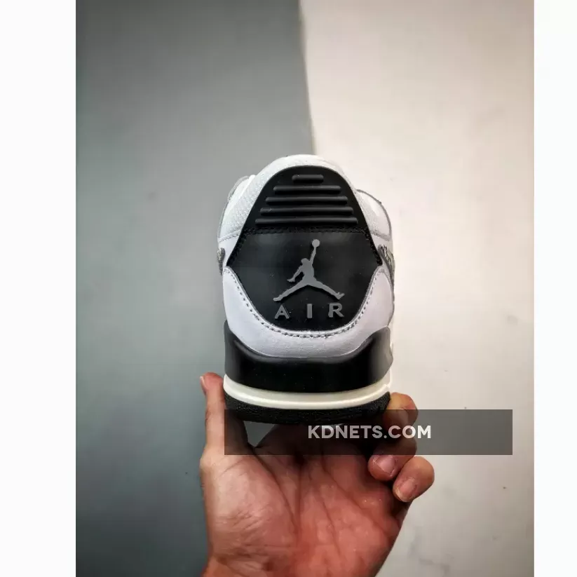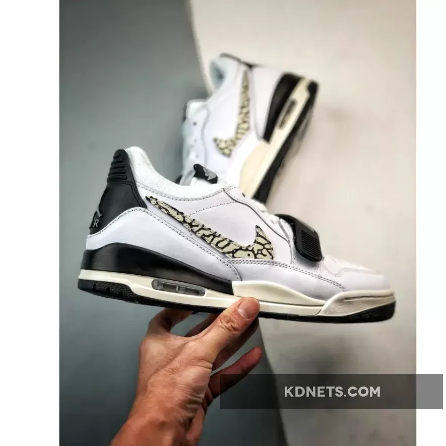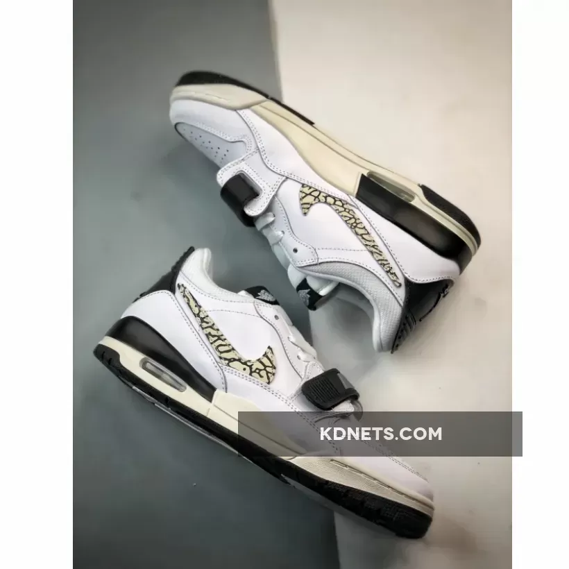this Jordan Legacy 312 Low dons a White leather construction all over the upper with perforations hitting the toes and mesh detailing on the ankles and tongues. This minimalist approach allows the more intricate details to shine, particularly the “Cement Grey” swooshes adorned with the iconic elephant print pattern — a hallmark of Tinker Hatfield’s designs for the Air Jordan line, namely his first design for the Jumpman Brand, the Air Jordan 3. The pair then sits atop a fittingly colored sole unit, with off-white midsole injecting a vintage feel, while the old-school black outsole ensures durability and traction underfoot.