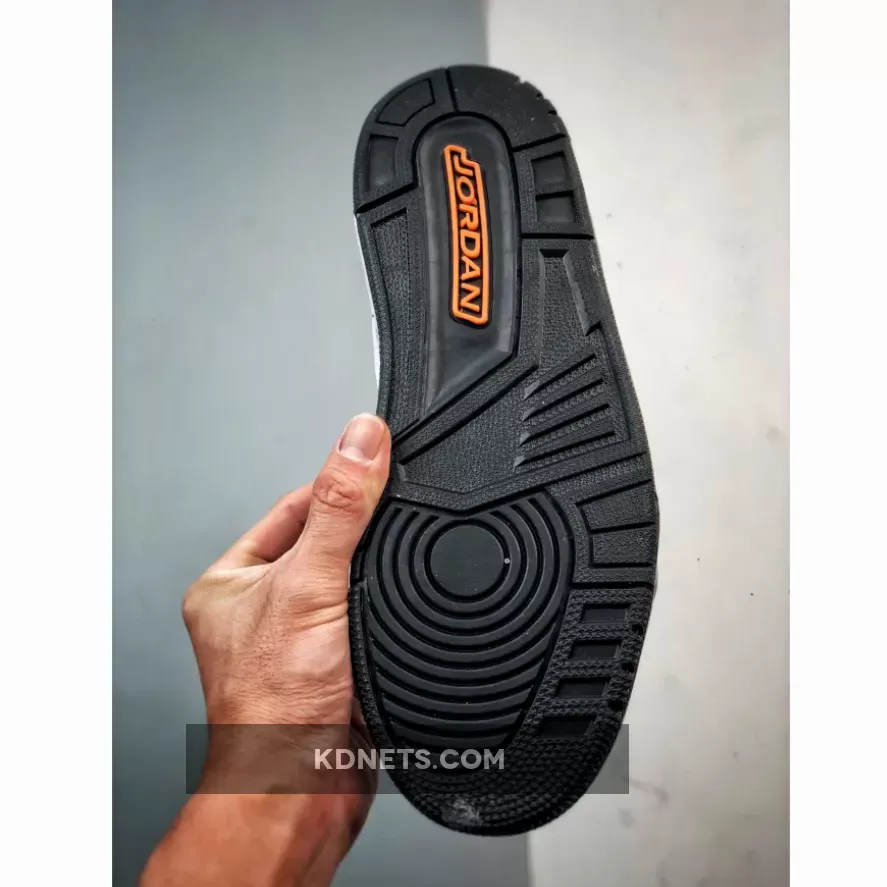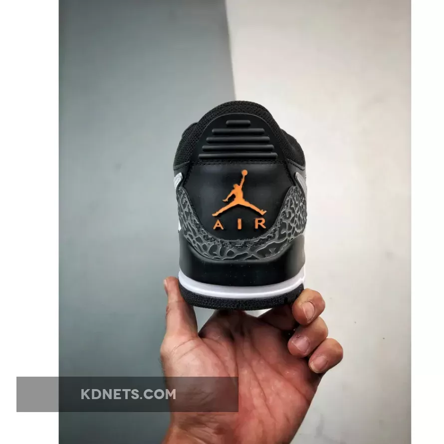 Vibrant Orange accents on branded areas infuse the shoe with the distinctive “Fear” aura but also pay homage to the original Jordan 3 Fear colorway.