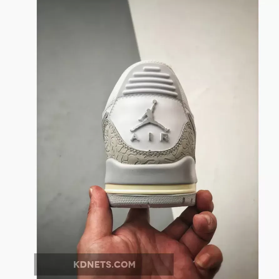 Official images reveal pristine white leather across almost the entire upper, broken up by a light grey Swoosh and elephant print a la Air Jordan 3. An off-white AJ3 midsole rests underfoot, but the most notable (albeit subtle) treatment is the shoe’s cursive “Love” text on the right tongue. That same detail appeared across multiple Valentine’s Day Jordan Legacy 312s last year, but this pair doesn’t feature any obvious holiday callbacks. It’s also April.