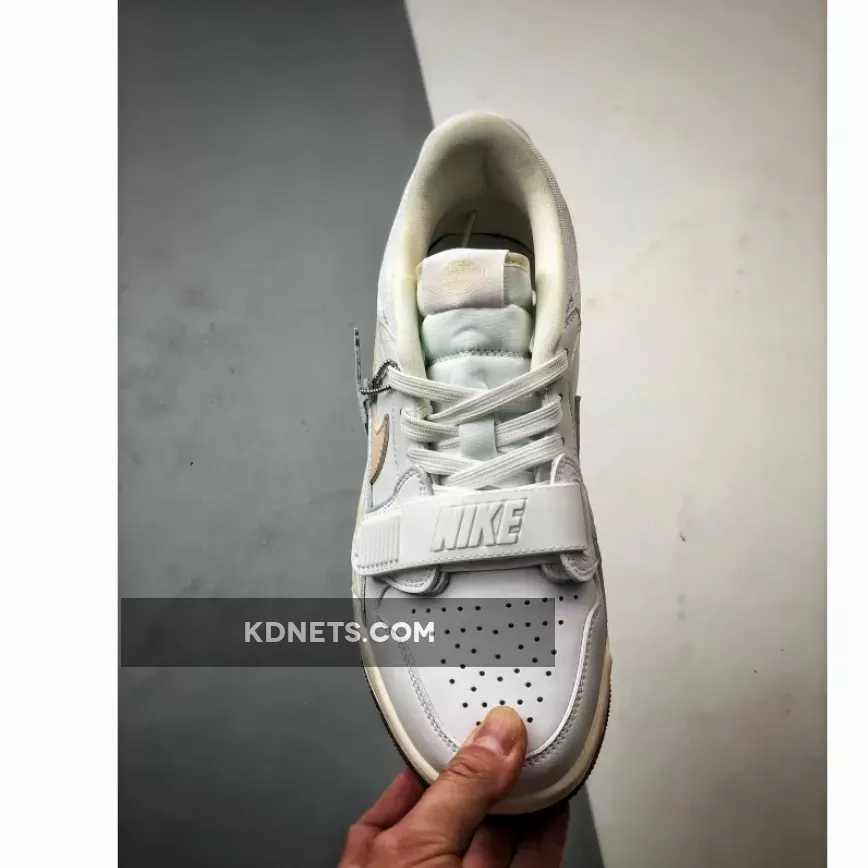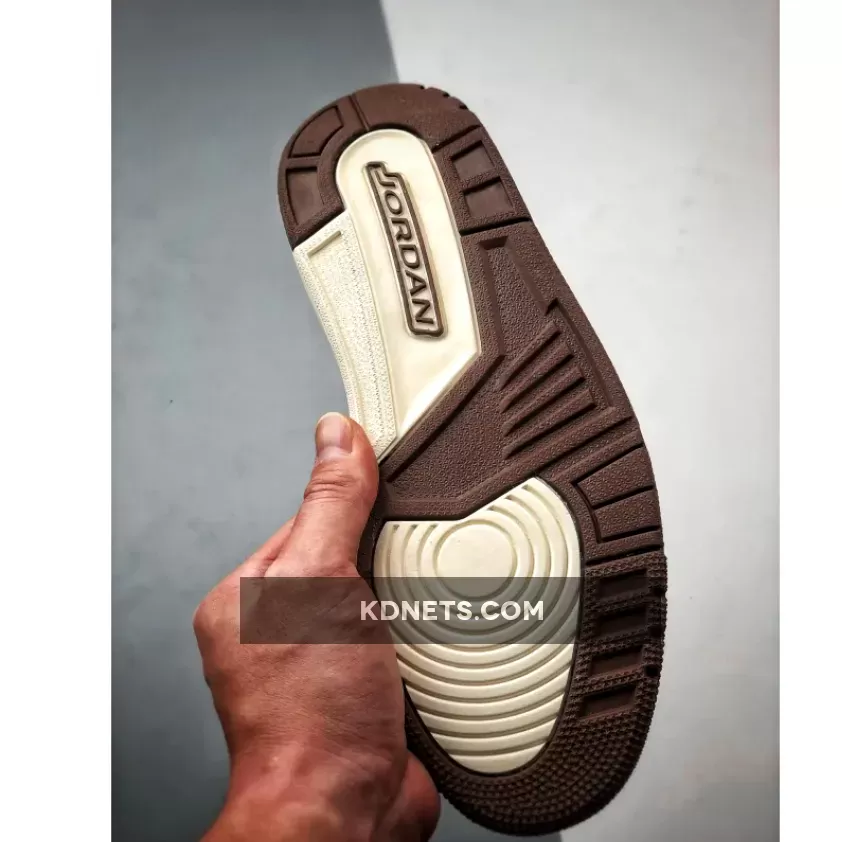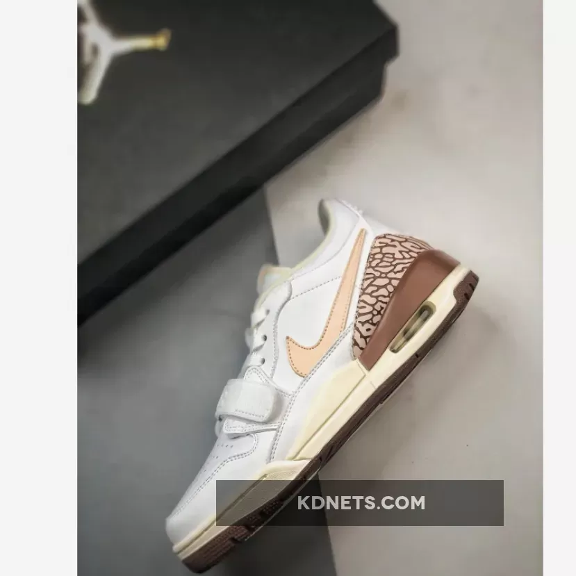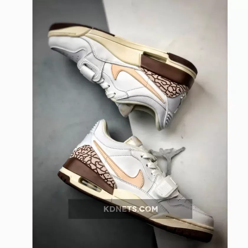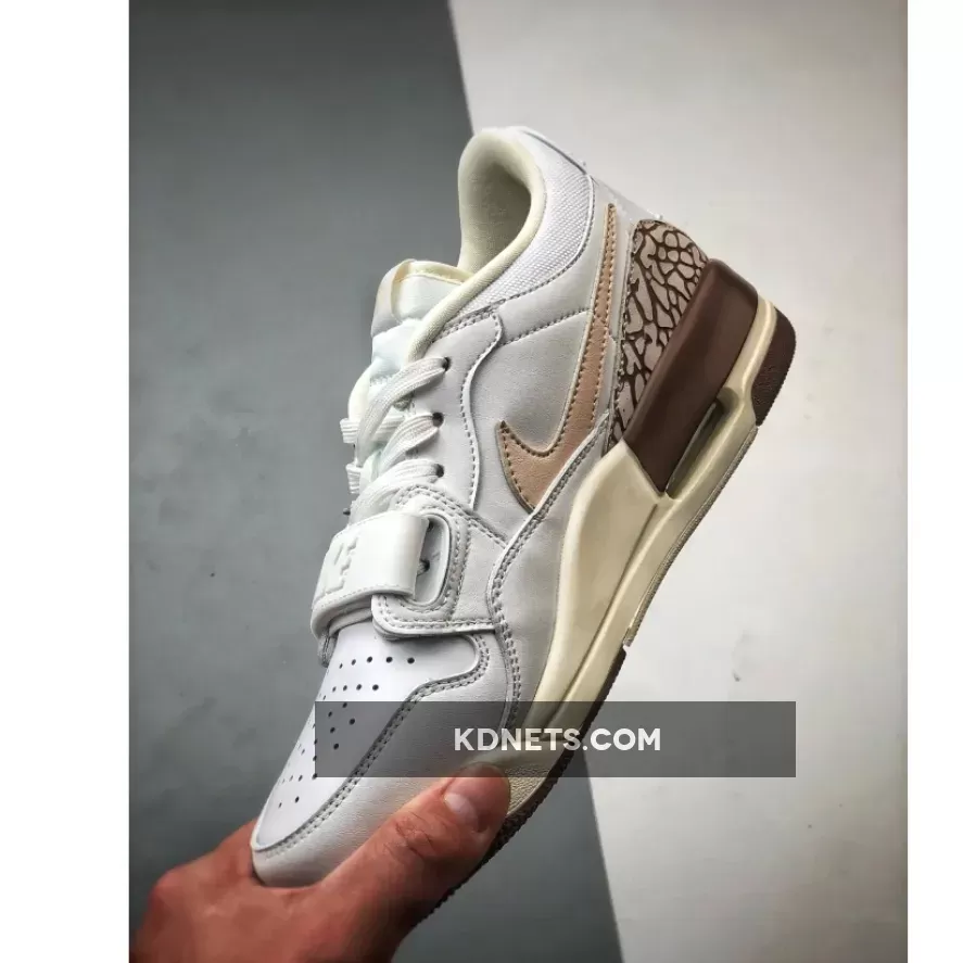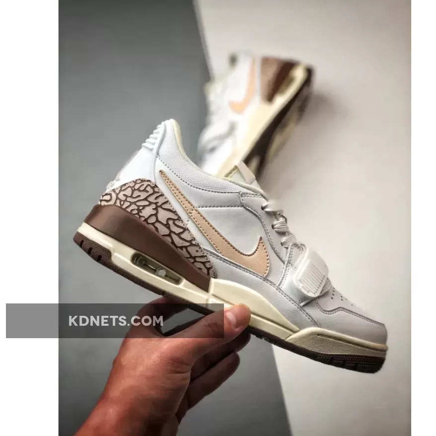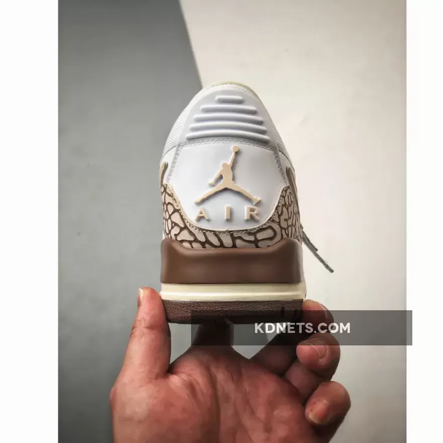 White leather makes up the base layer on this pair, joined by light tan accents on the Swoosh and lining for a tasteful contrast. The heel is adorned with a brown elephant print, echoing the detailing on the sole, while a tan Jumpman logo on the back completes the look.