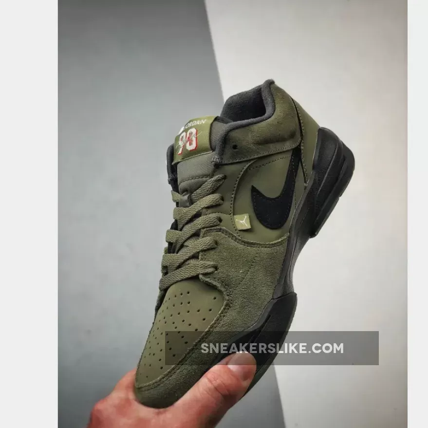 Embarking upon a palette eerily reminiscent of his late 2018 friends & family Air Jordan 4 “Olive”, the hybrid mid-top executes a similar shade of the stale green/brown hue across the silhouette’s suede and nubuck upper. Jet-black contrasts then bring a pitch-dark, winter-ready treatment to the profile swooshes, inner lining and midsole while further “Olive” accents ascertain the tongue and laces. What’s more, a seldom infusion of “University Red” treats the branding at the heel counter and insoles, drawing a direct connection to Scott’s Air Jordan 1 “Dark Mocha” installment from 2019.