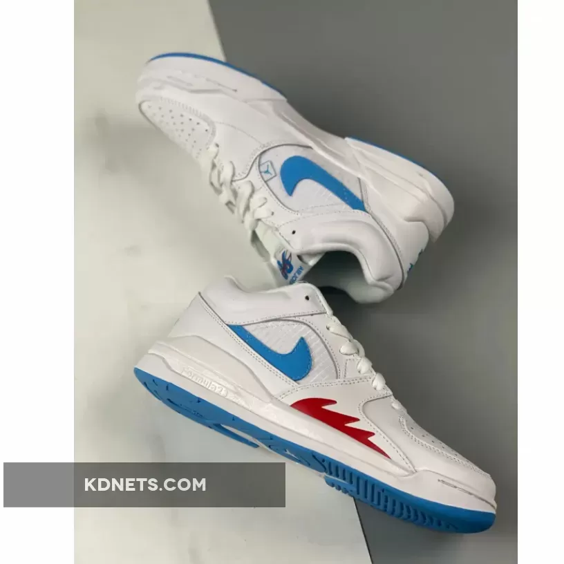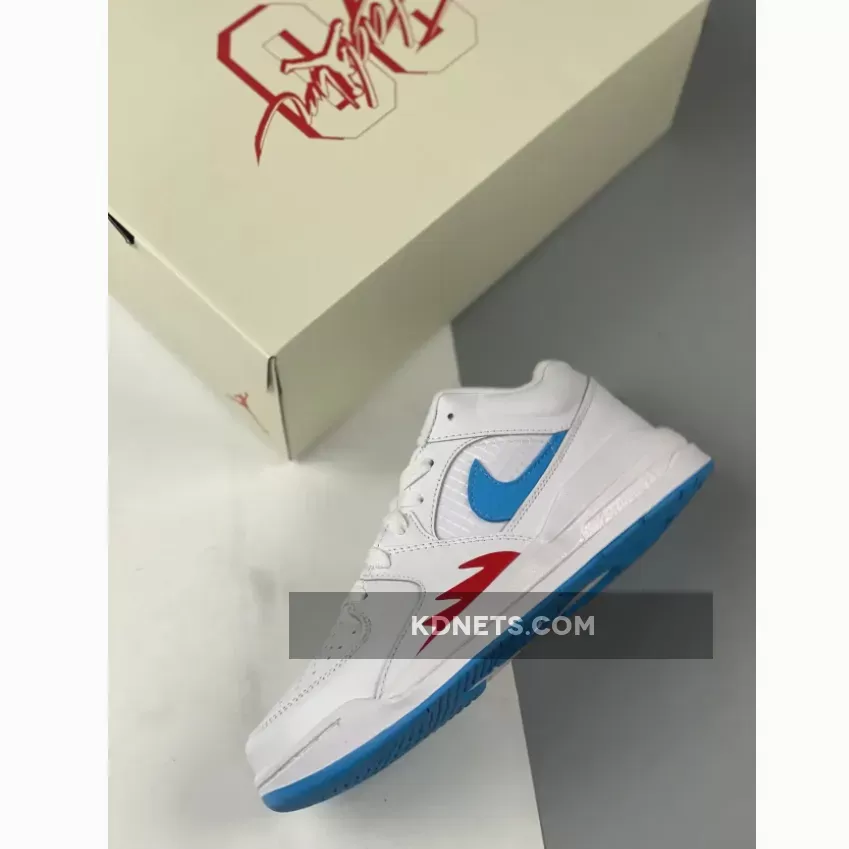 Clean white base meets vibrant accents! Photo Blue & Fire Red elevate the classic design, resulting in a stunning sneaker that’s sure to turn heads. #MustHave #Stadium90