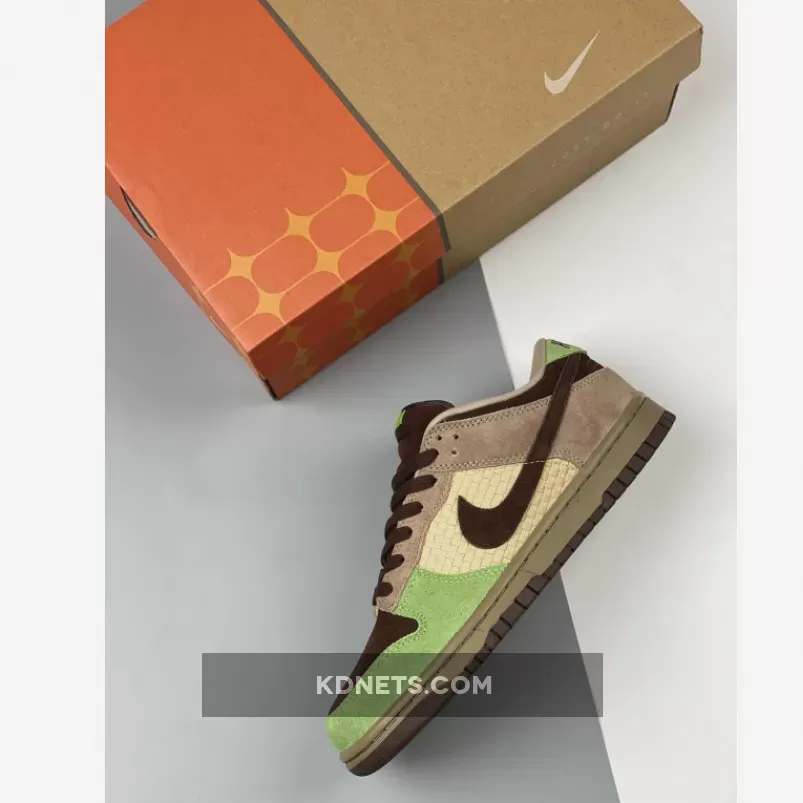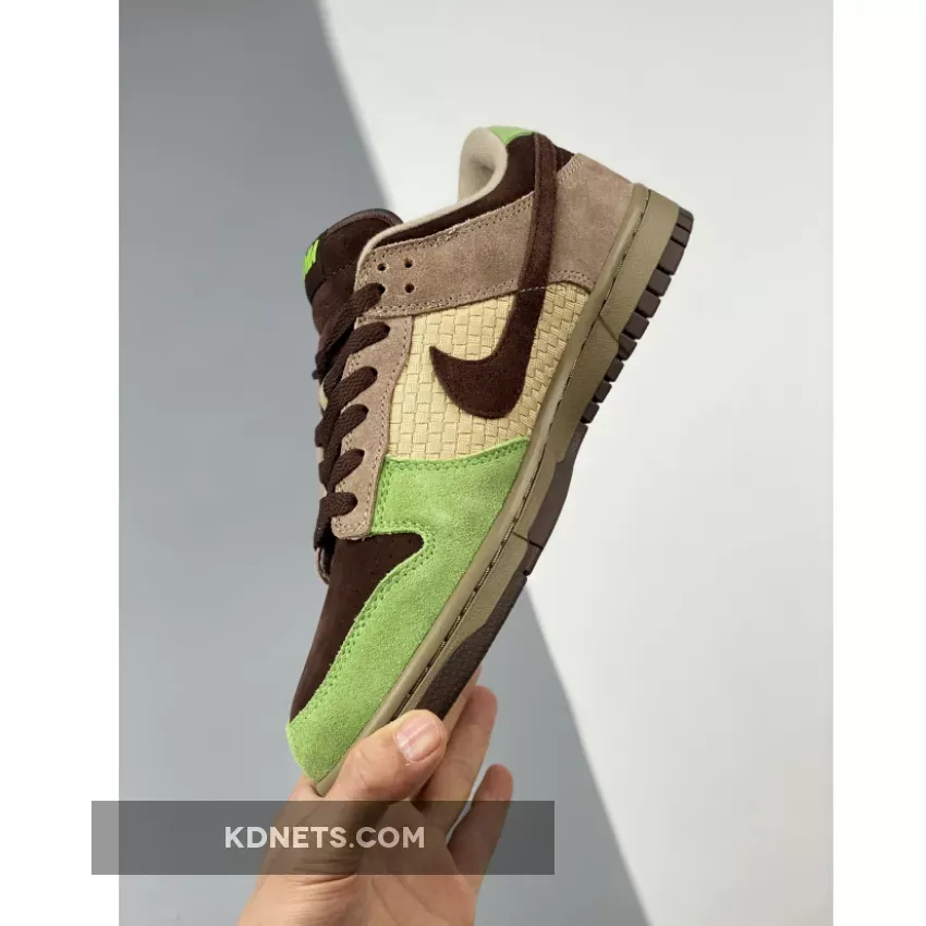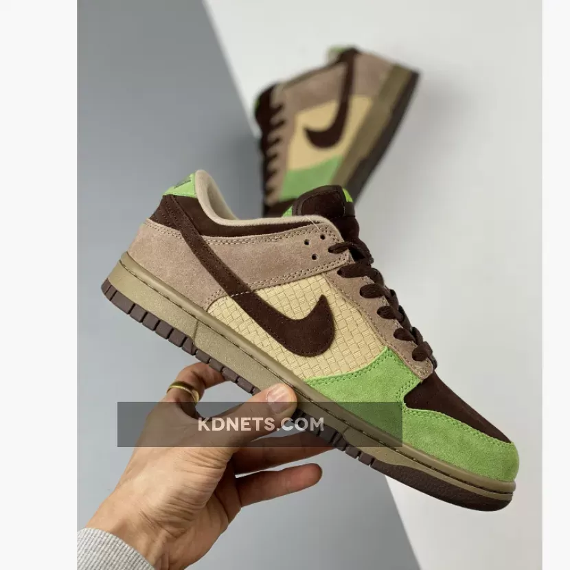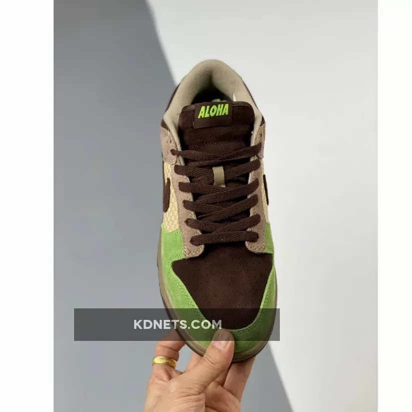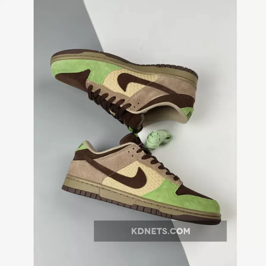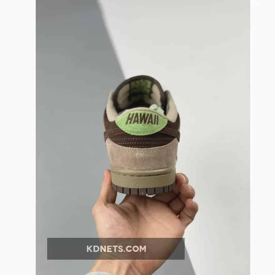 In 2004, Nike’s Jesse Leyva collaborated with KICKS/HI to create a design for the Dunk Low. Ian Ginoza, the creative force behind KICKS/HI, was given the task of representing the culture and landscape of their home state. The resulting design captured the relaxed style of beach parties and luaus with a color scheme of green, brown, and beige, along with a mid-panel made of weaved “Lauhala” bamboo. One unique aspect of this Dunk Low is the “ALOHA” label on the tongue and “HAWAII” embroidery on the heel-tab, which is a departure from the customary Nike branding. This feature is rarely seen in other releases.