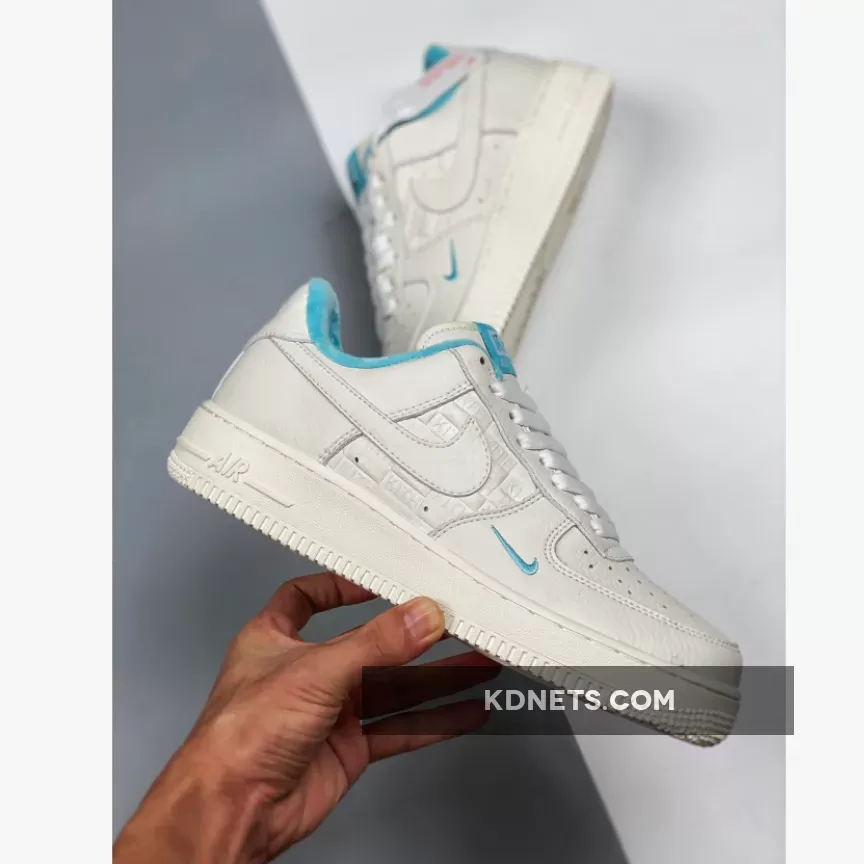 The Nike Air Force 1 Low Kith Hawaii is one of the iconic Nike Air Force 1 Low sneaker that appears in white, Blue Lagoon and Aloe Verde color schemes.