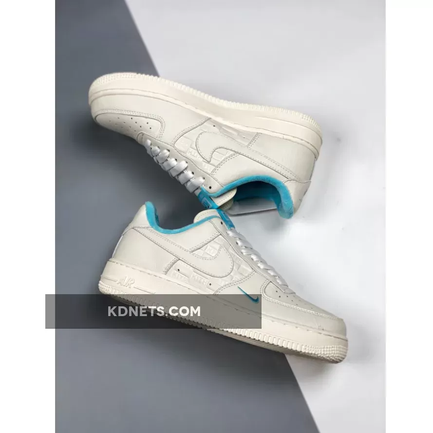 The Nike Air Force 1 Low Kith Hawaii sneakers feature a white leather upper that is contrasted with a Blue Lagoon sock lining and a mini-Swoosh located close to the midfoot in the same Blue Lagoon color. A Kith Air branding in Lagoon Blue appears on the heel cap and the Lagoon Blue-dressed tongue tag at the tip of the white tongue. Its white toe-box features perforations meant to ensure unrestricted airflow. A Sail rubber midsole for impact absorption and cushioning and a treaded rubber outsole in the same sail color for traction and grip on various surface completes the look.