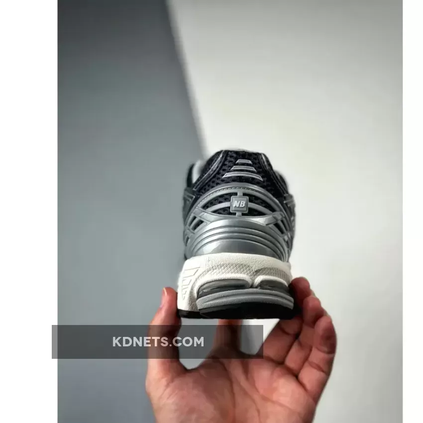 the upper which is joined by Silver and Grey accents on the leather overlays and branding throughout. Tonal leather trimmings decorate the toe boxes medials with white detailing, while reflective N-LOCK insignia adorns the latter alongside grey lace eyelets. Metallic plastic guards protect the heels, accompanied by model-specific branding placed above.