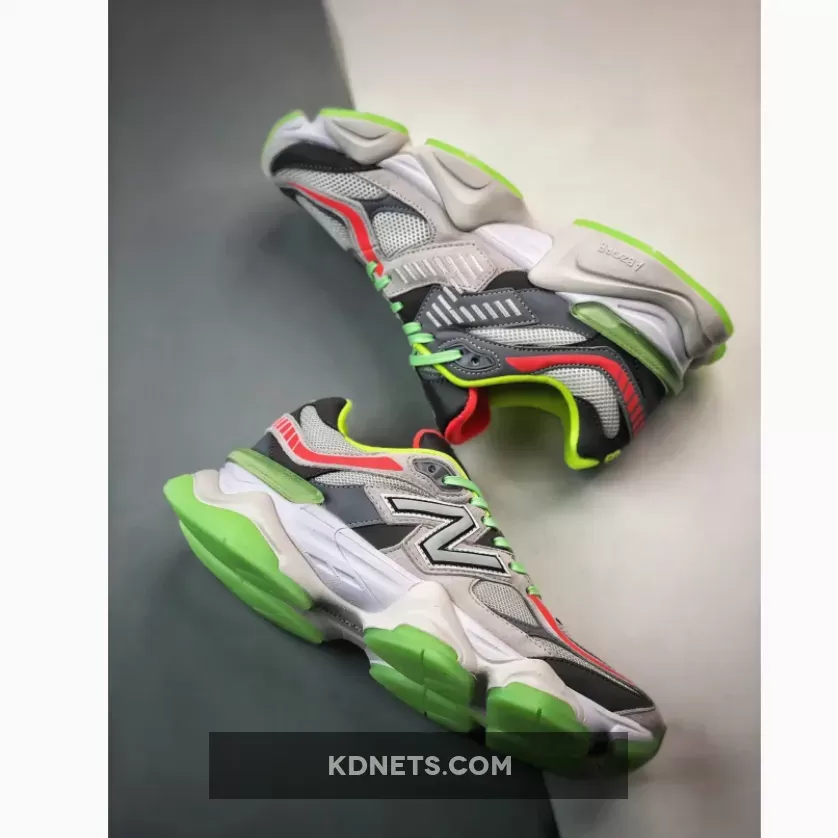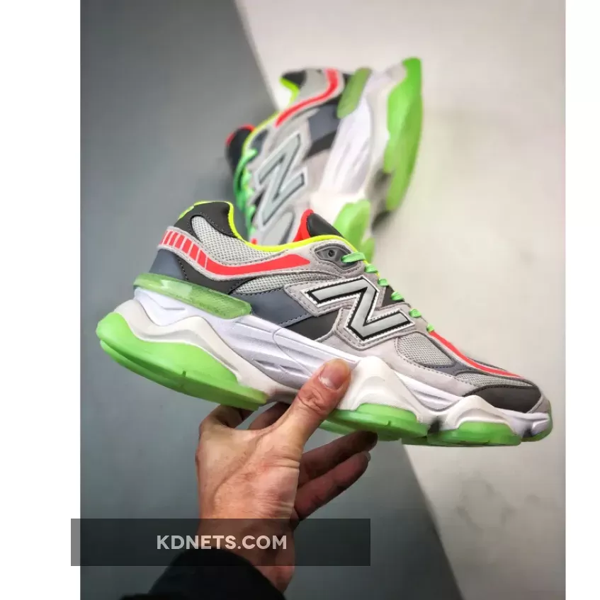 Dubbed the “Glow” 9060, this DTLR-exclusive take screams long summer nights with vibrant colors, glow-in-the-dark hits, and breathable materials. It features different Grey tones covering its upper highlighted with vibrant Green, Volt, and Crimson contrasting accents. Other details includes glow-in-the-dark lateral “N” logos, tongue tabs, and rubber outsole with “NB” embroidered heels. Traditional lacing system atop a dual-density ABZORB and SBS foam midsole completes the design.
