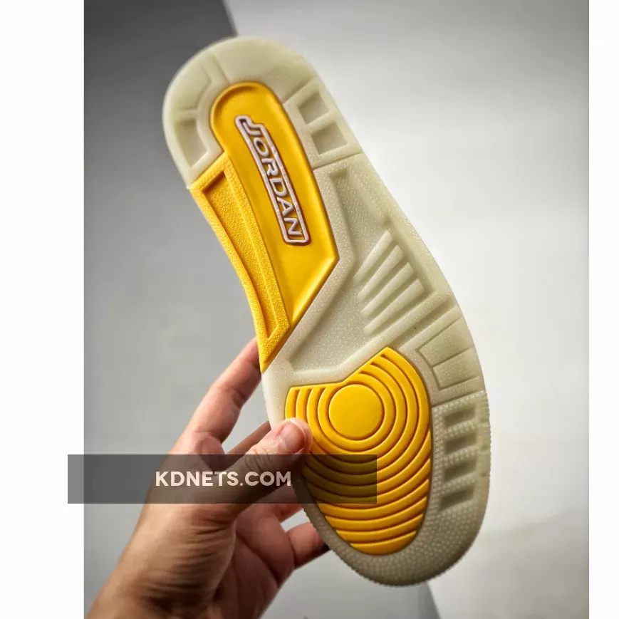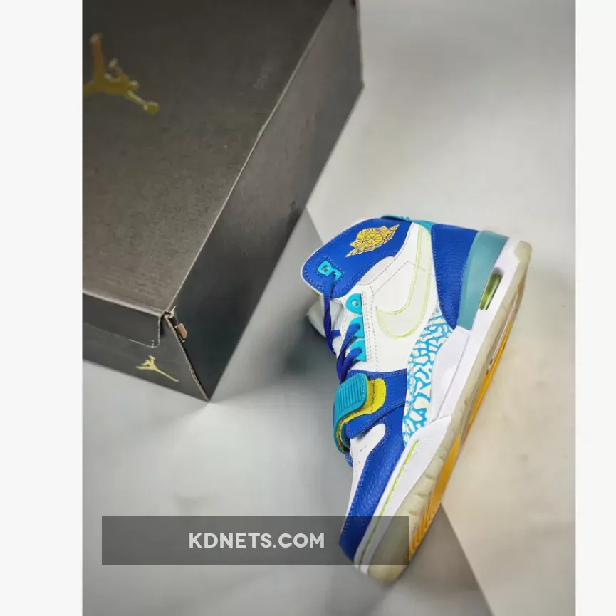 The Jordan Legacy 312 GS ‘Fly’ draws inspiration from the Air Jordan 1, Air Jordan 3 and Nike Alpha Force. Don C. designed the model, which released in March 2019 with a colorway of Blue Lagoon, Clear, Team Royal, Off White, Blue Gaze and Amarillo. The sneaker comes with an abundance of Jordan branding, a leather and synthetic upper, and a forefoot strap. Rounding out the look is a visible Air-Sole unit and a rubber outsole.
