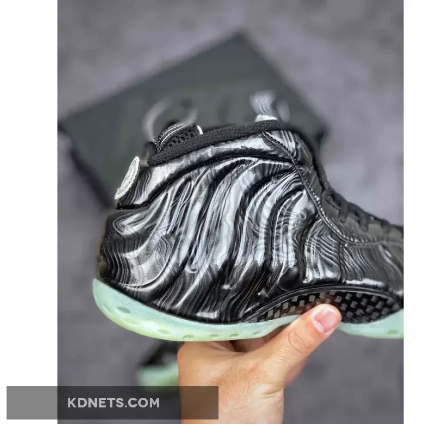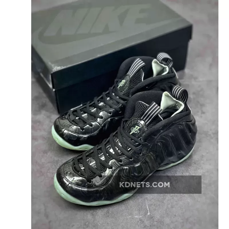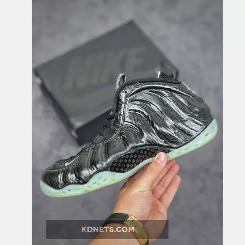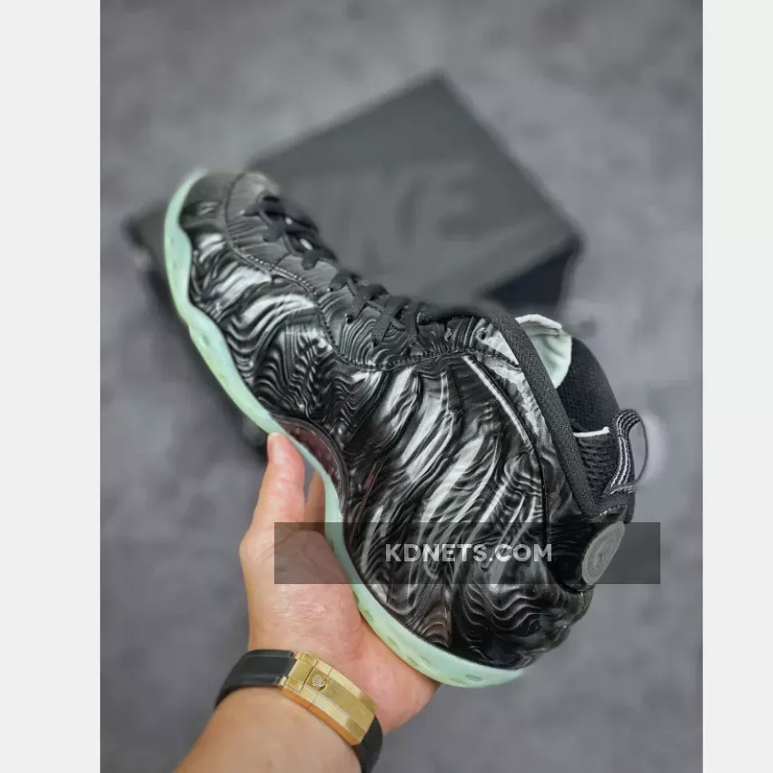 Dressed in a Black and Barely Green color scheme. This Nike Air Foamposite One features a shiny Black Foamposite shell with White appearing on the liner, lined pull tabs, and forefoot embroidered mini Swoosh. The collection’s holographic logo on the heels replace the signature 1 Cent logo completed with a glow-in-the-dark outsole.