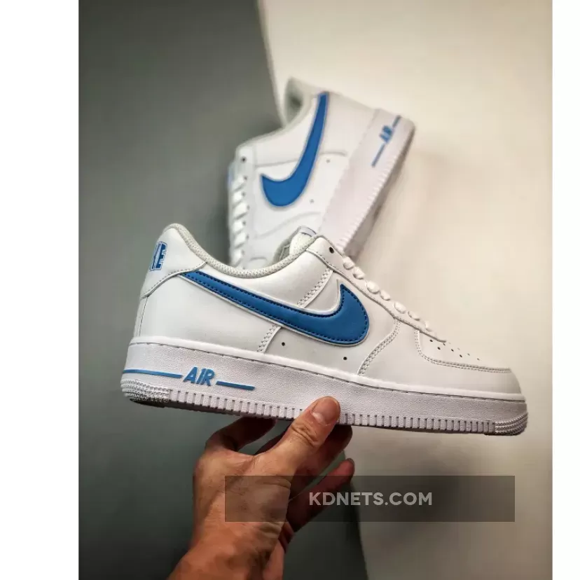 This release feature a traditional premium White leather upper with matching tonal stitching throughout. A matching midsole and rubber outsole adds to the clean look. Highlighting the shoe are University Blue accents on the Swoosh logo, Nike Air tongue tag, line around the heel and a stenciled “NIKE” branding on the heel tabs.
