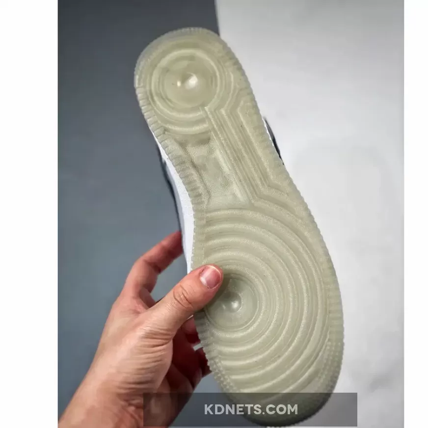 Underfoot, Kilgore’s made-for-basketball sole unit doesn’t detract from the upper. The “Air”-branded midsole favors an all-“White” finish that allows the top-half to revel in the spotlight. The grey Air Force 1, then, brings a semi-translucent, milky makeover to its radial traction. The design choice has appeared on other