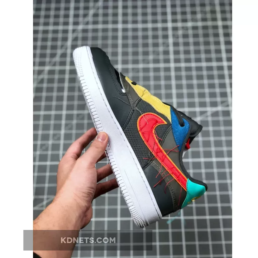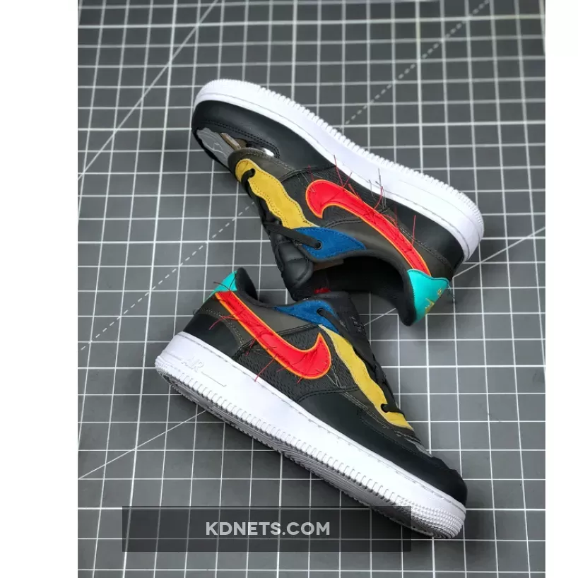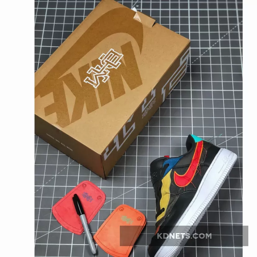 While the theme for the entire collection has yet to be revealed, this offering of the Nike Air Force 1 Low appears to feature a tear-away upper with mesh side panels. Blue, Yellow, Red, and Green suede overlays, unstitched Swooshes, BHM branding on the tongues and insoles atop a White rubber sole completes the design.