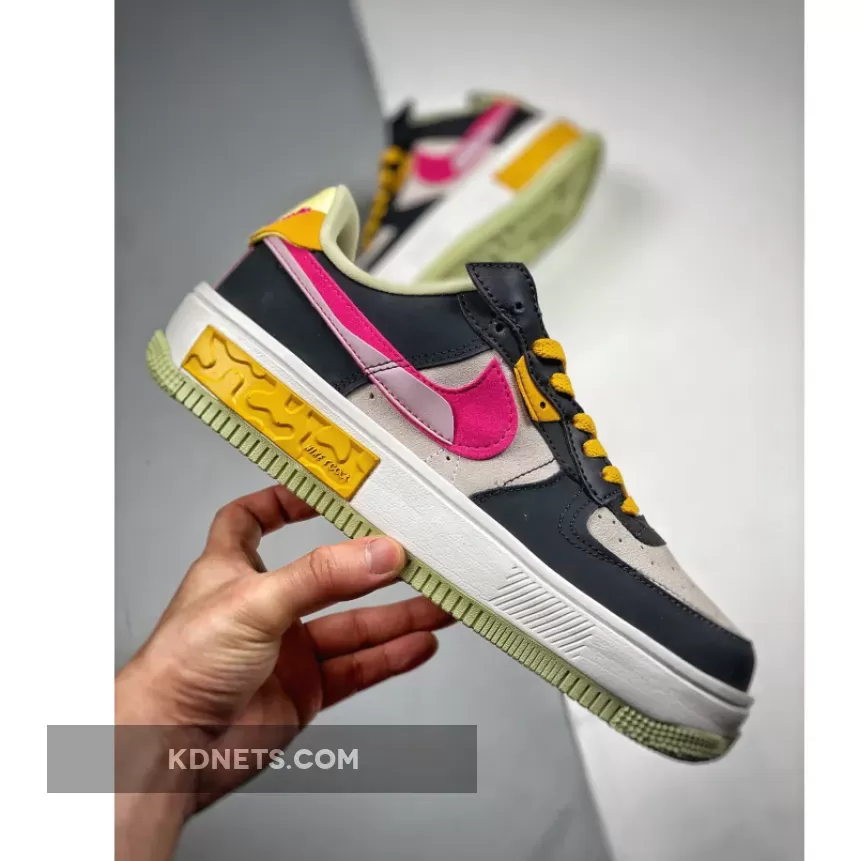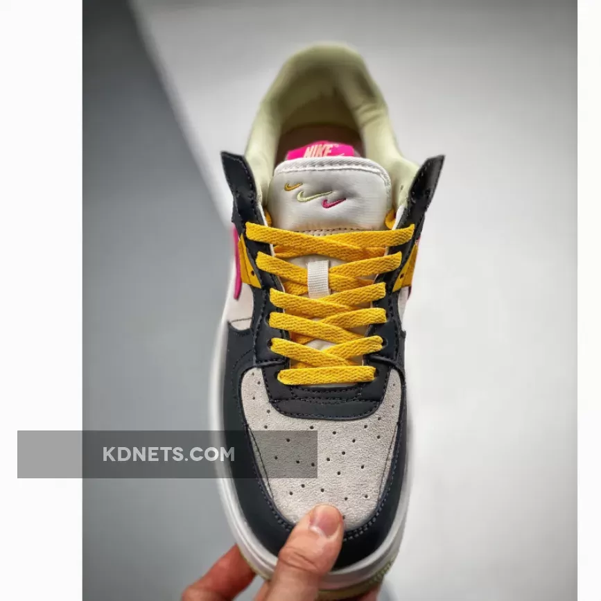 The Nike Air Force 1 Fontanka dresses up in playful colours and a deconstructed look with the new Nike Air Force 1 Fontanka Pink Prime. This AF1 features an “Off-Noir”, “Summit White” and “Pink Prime” colourway. The base of the upper is Summit White suede showing on the toe box and the quarter. The overlays, also in suede, on the toe cap, mudguard, the first layer of the stacked eyestay panel and the foxing are in “Off Noir”. The striking stacked signature profile Swooshes on both the medial and lateral sides of the shoe feature“Pink Prime” with a flannel-looking finish layered over by a lavender-coloured patent patch. Pops of golden yellow and light yellow appear on the eyestay panel, the laces and the unbranded heel tab. The stacked tongue tab shows off three mini Swooshes in golden yellow, Summit White and Pink Prime.