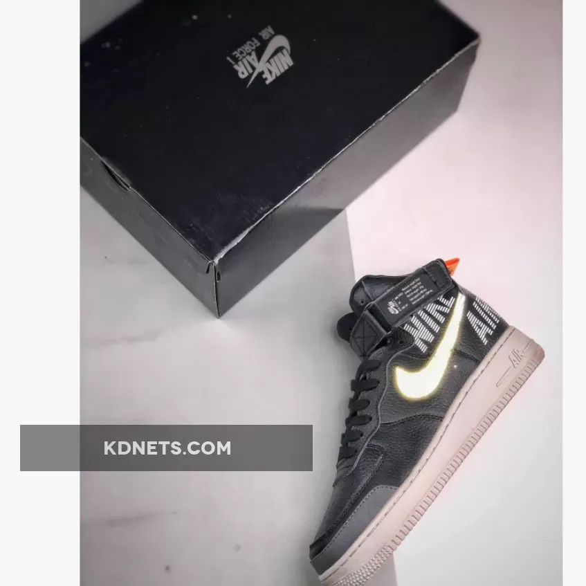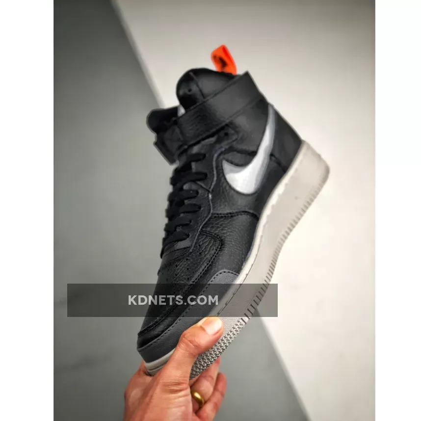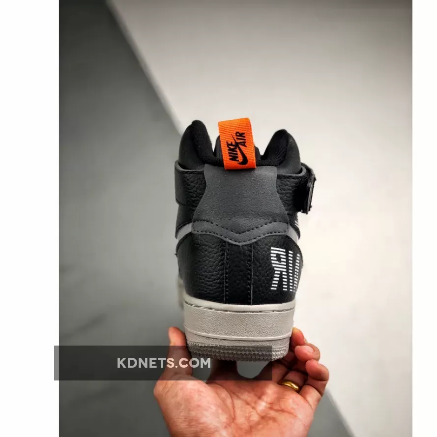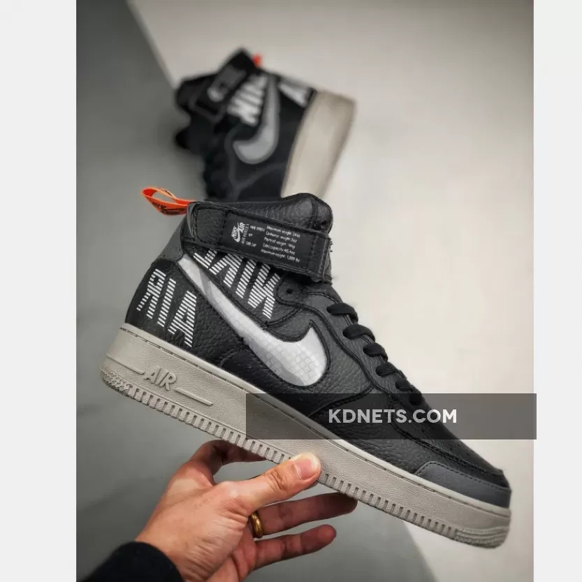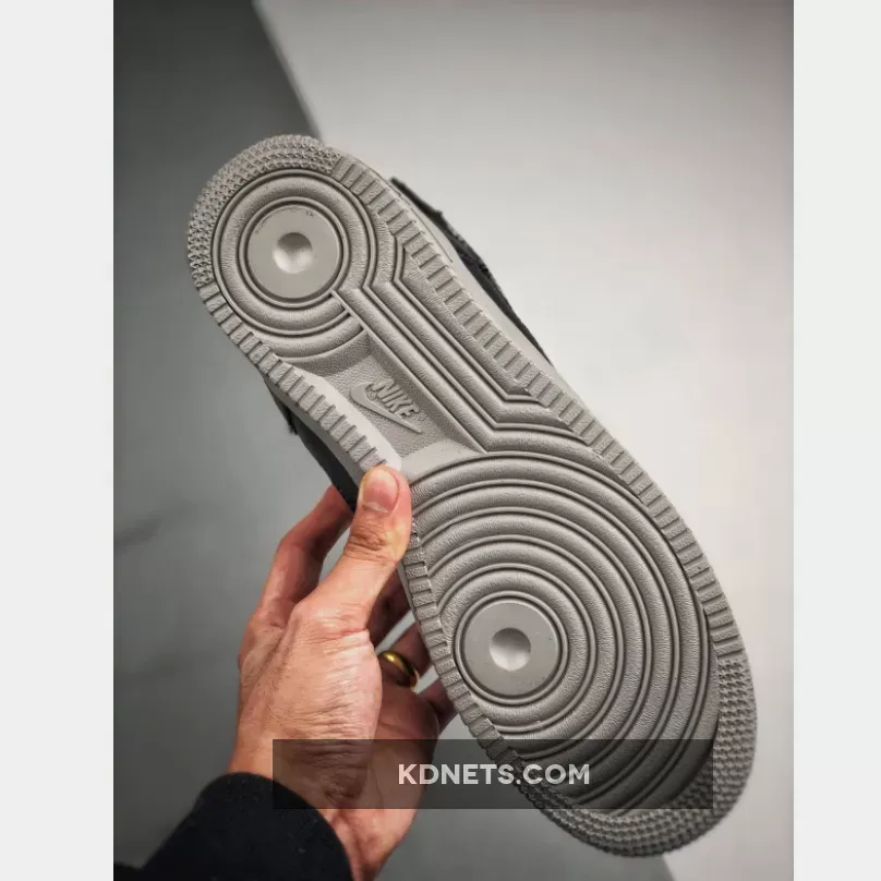Painted in an all black colour scheme that will work with any winter fit you throw at it, the upper of the Nike Air Force 1 High Black Grey is made from tumbled leather, while fuzzy suede accents grace the toe box and heel for an even more premium fit and finish. An ankle strap ensures the ultimate lock down fit, and this is embellished with technical verbiage for a deconstructed look. In fact, a black and orange striped pattern can be seen on the tongue, possibly reference Off-White. Along the lateral and medial sides, a translucent Swoosh makes its presence known, allowing sneakerheads to flex their sock game with ease.