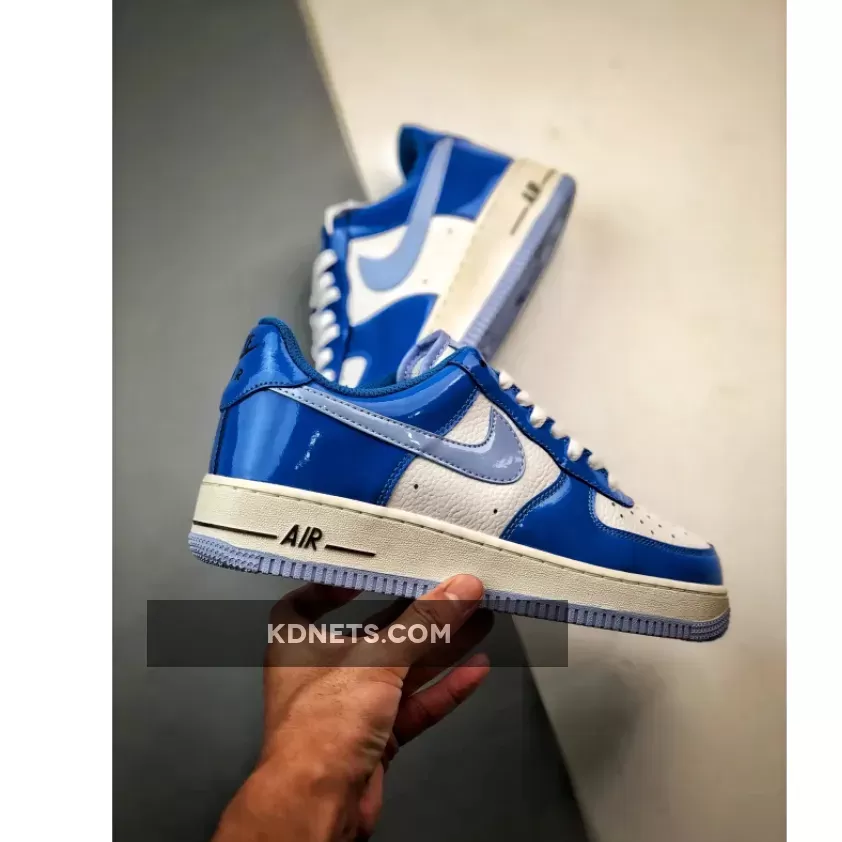 A bit more than a simple arrangement of cool tones, this Nike Air Force 1 constructs many of its overlays out of a deep blue, patent leather, effectively simulating the shimmer and feel of frozen waters. Lighter, albeit complementary shades are used along the outsole, Swoosh, and tongue label, while the tumbled leather base, midsole, and lace unit opt for white neutrals.