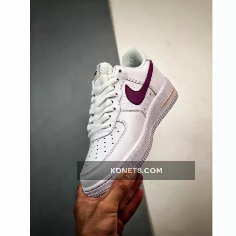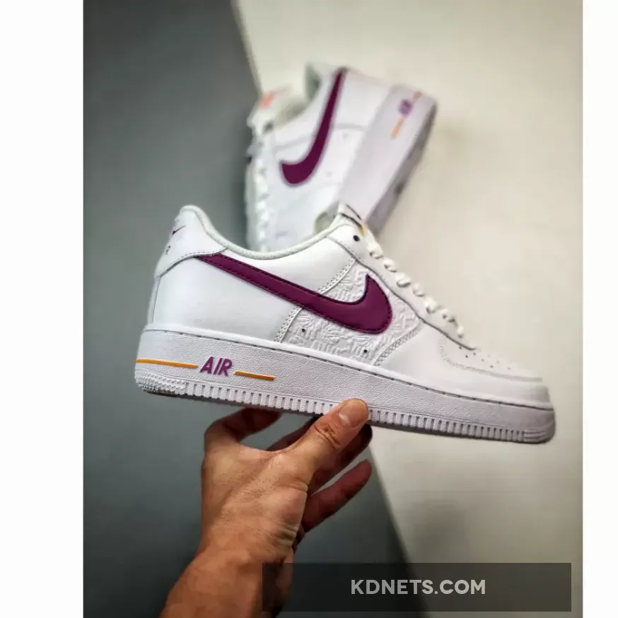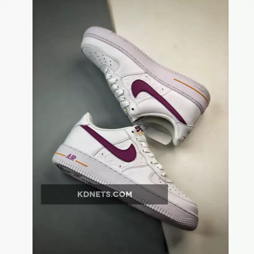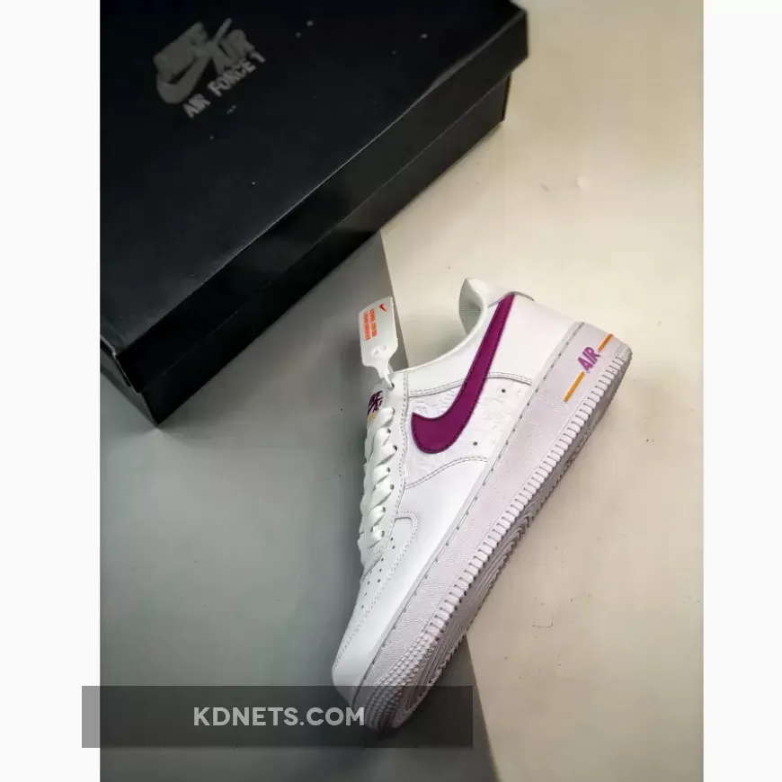 Dressed in a White, Bold Berry, and Speed Yellow color scheme. This offering of the Nike Air Force 1 Low features a White smooth and tumbled leather upper details with retro-inspired Nike Basketball motifs on the side panels. Berry branding, Yellow accents atop a White AF1 rubber sole completes the design.