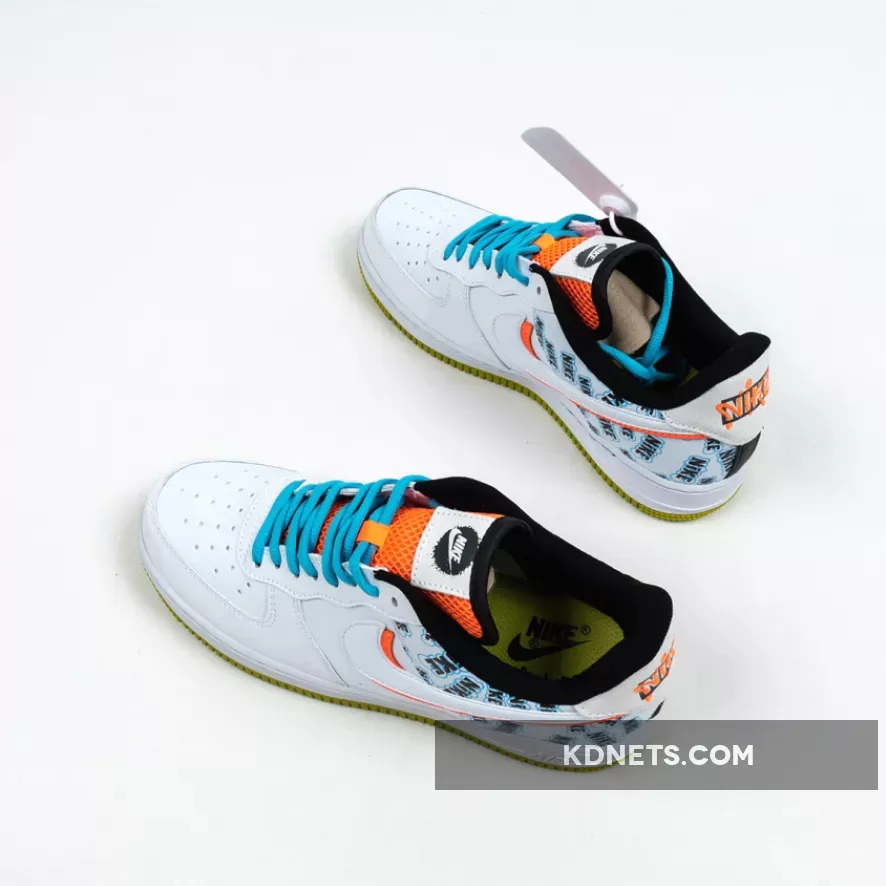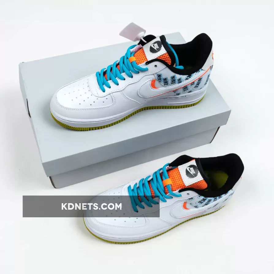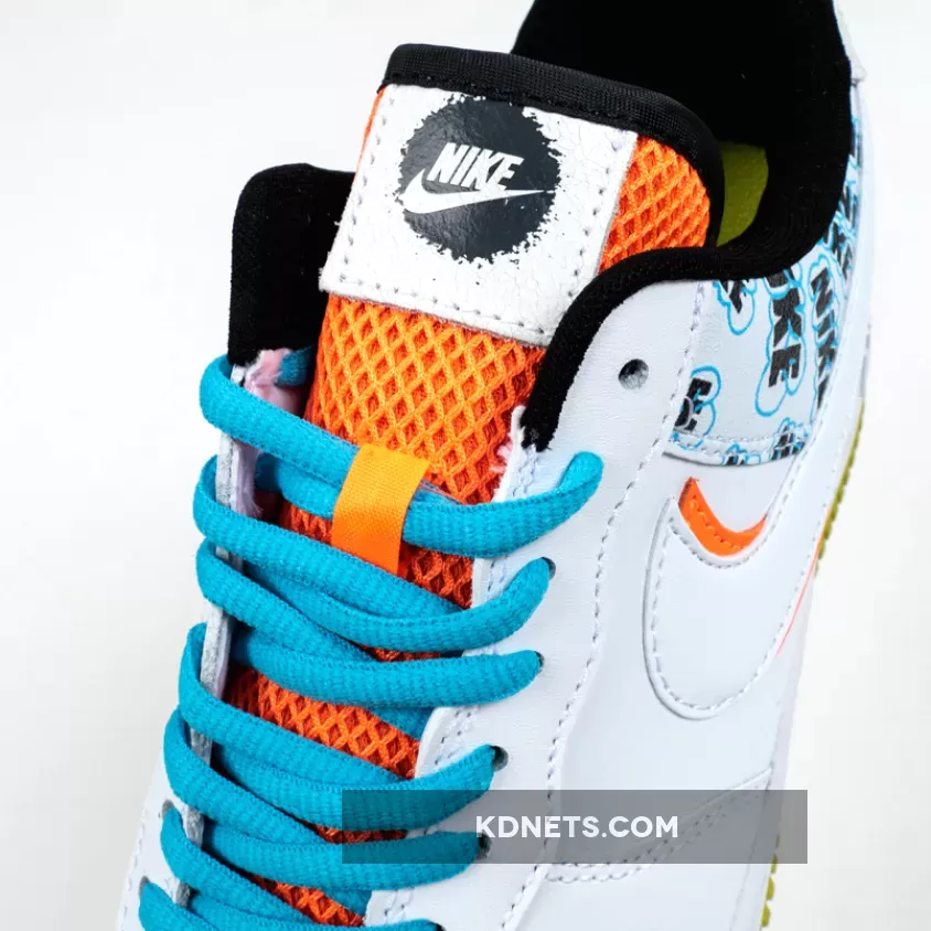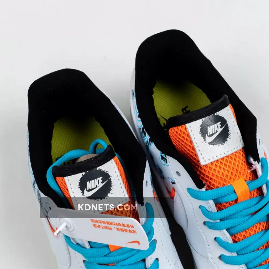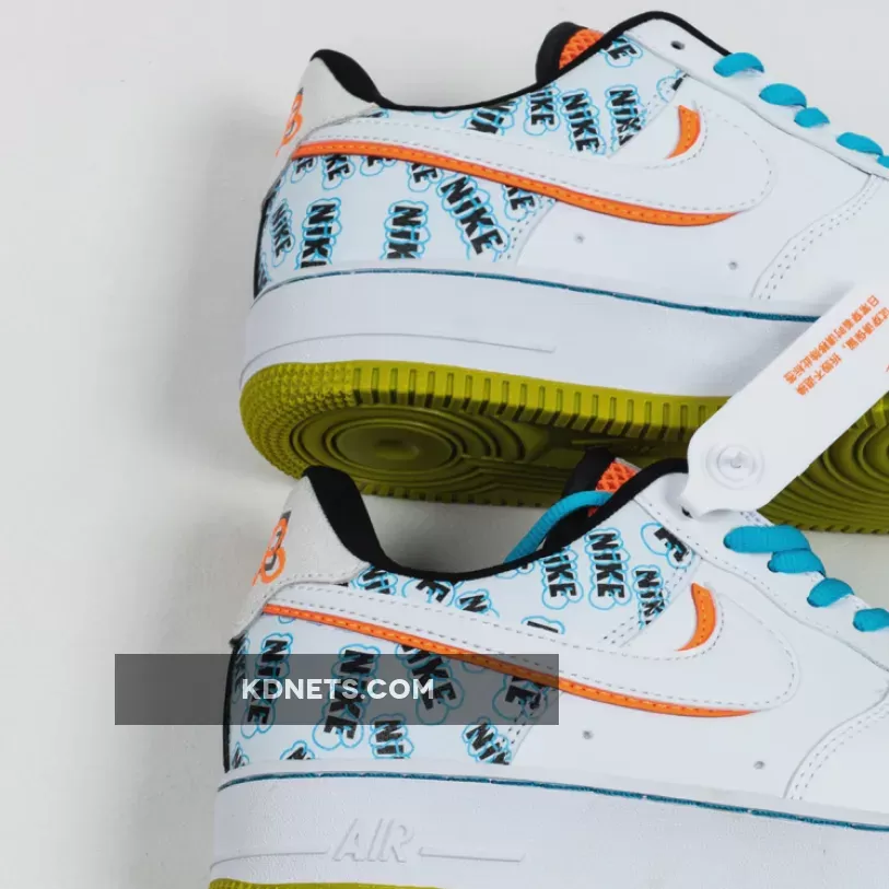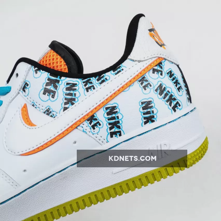 Its rear paneling is surely its most eye-catching section as it sports all-over graffiti-like Nike branding which some can even argue look very similar to the SpongeBob “A Few Moments Later” font. While not officially tied to the animation series, elsewhere on these AF1s you’ll find Nickelodeon-esque accents dispersed throughout the orange mesh throats, under-stacked Swoosh logo and heel branding, yellow treading reminiscent of Mr. Squarepants himself, and bright blue shoe strings that channel Squidward vibes.