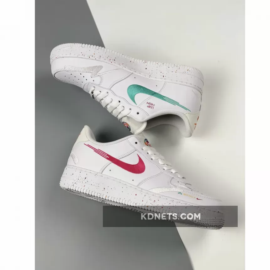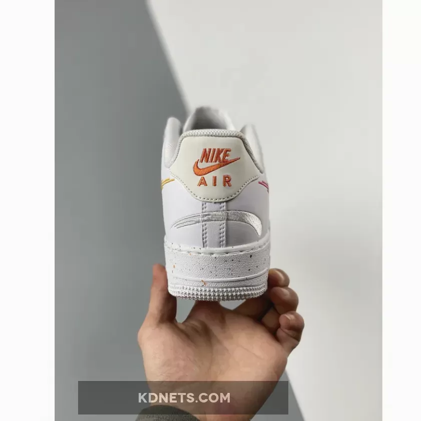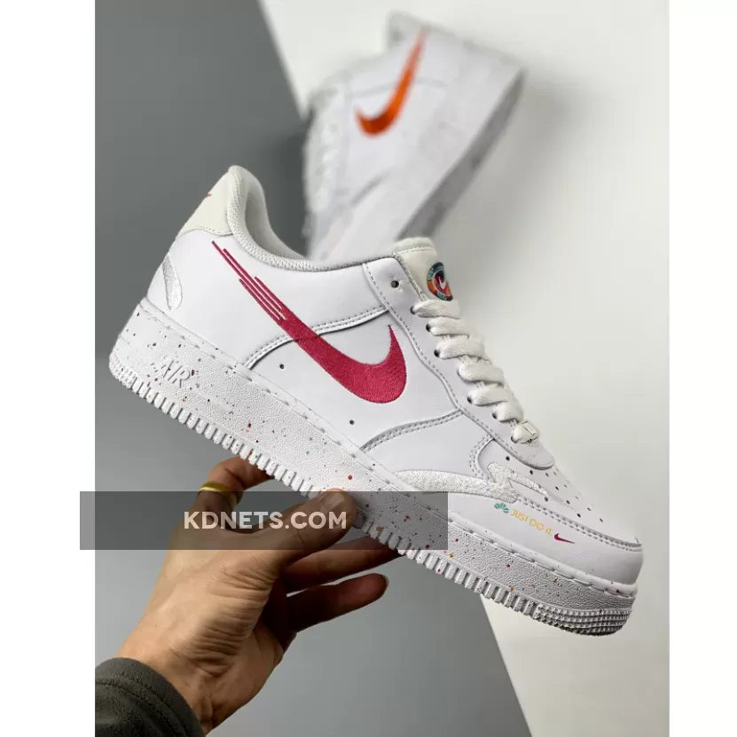 Central to a classic white-on-white construct, color is splayed across the pair in the form of embroidered Swooshes and silver streaks, flecked sole units, and written word — all of which focus on hues of orange, red, teal, and gold. The aforementioned patterns sit atop the tongue and insole, with marble-look dubraes rounding out the design.Finishing touches of this Nike Air Force 1 Low include the “Just Do It” detail on the forefoot and the metallic silver lace dubrae.
